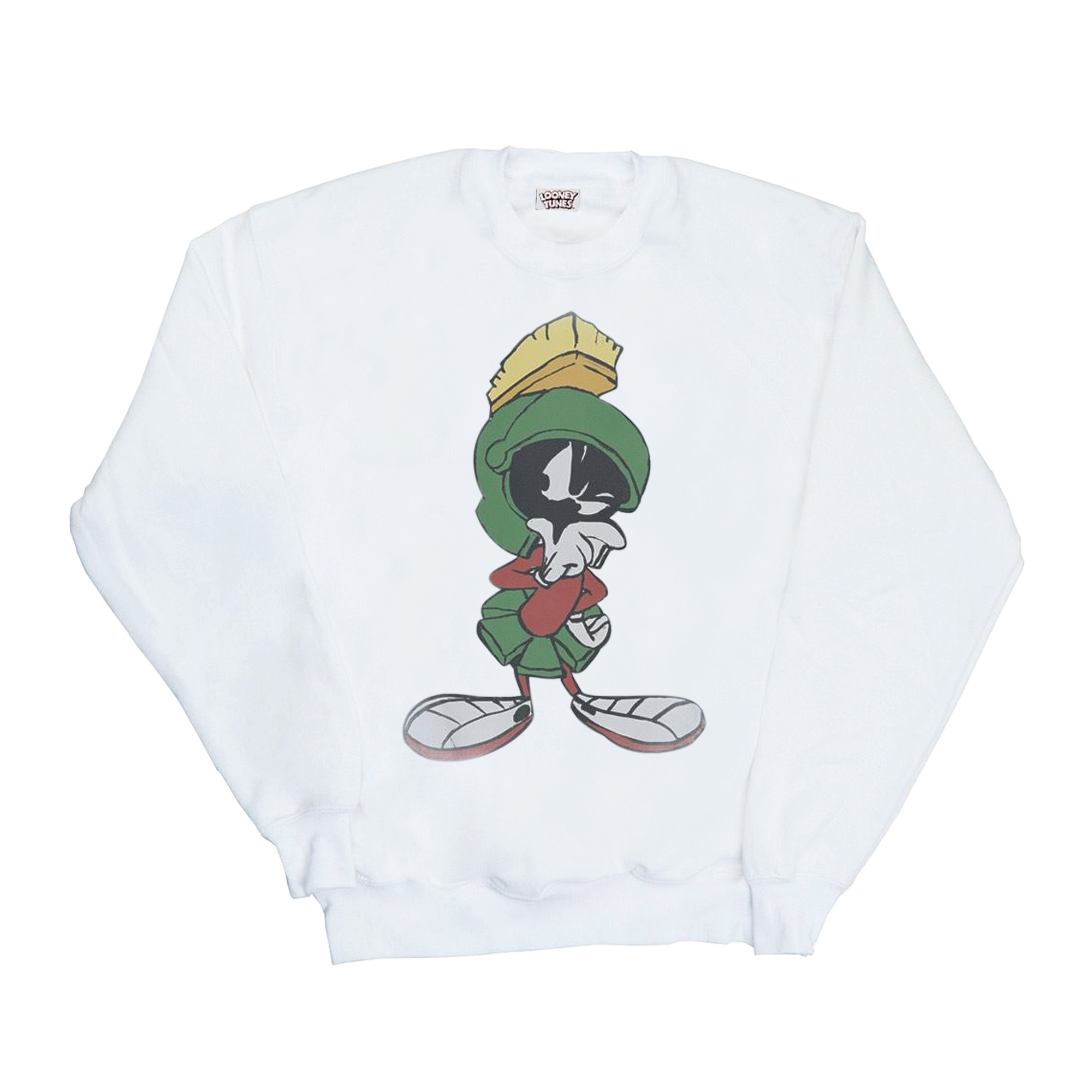 Personnages: Marvin le martien. Design/motif: Pose, Imprimé. Caractéristiques: Étiquette de col avec marque, Épais, Étiquette pendante. Ourlet: Élastiqué. Matériau: Jersey simple. Encolure: Col ras-du-cou, Élastiquée. Ourlets bras: Élastiqués. Type de manches: Manches longues. g/m²: 280. Fermeture: À enfiler. Produit sous licence officielle. Composition: 50% Coton, 50% Polyester.