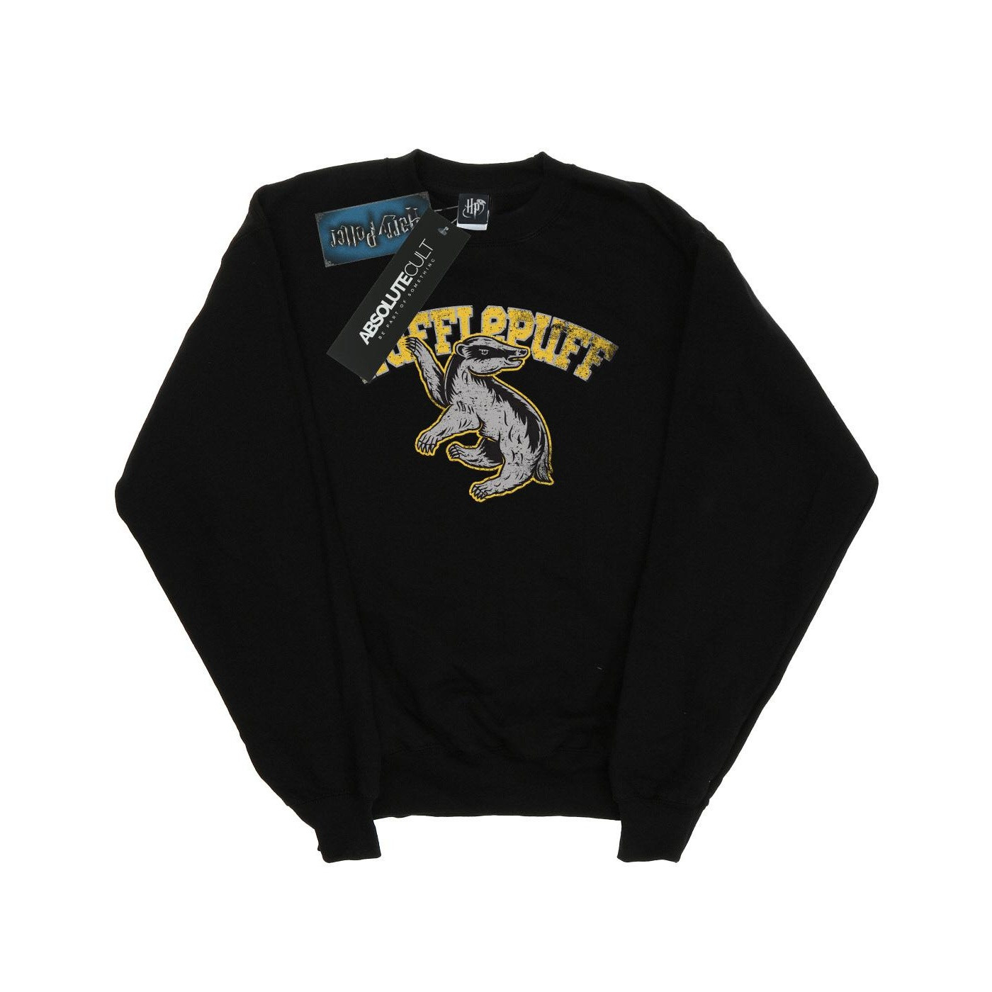 Design/motif: Emblème, Poufsouffle, Universitaire. Caractéristiques: Bande de propreté au col, Étiquette de col avec marque. Ourlet: Côtelé. Matériau: Chiné, Jersey simple. Caractéristiques des matériaux: Chaud. Encolure: Col ras-du-cou, Côtelée. Emballage: Étiquette pendante. Ourlets bras: Côtelés. Type de manches: Manches longues. g/m²: 153. Fermeture: À enfiler. Produit sous licence officielle. Composition: 50% Coton, 50% Polyester.