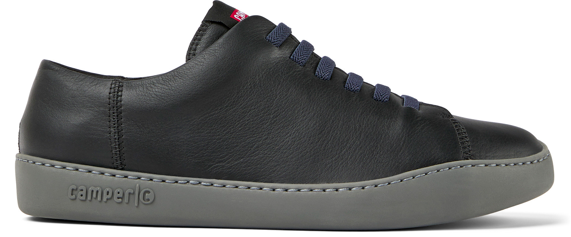 Chaussures noires pour homme. Cuir pleine fleur et tissu avec semelle extérieure en EVA et lacets élastiques. La Peu Touring est une version plus sportive et contemporaine de notre emblématique Peu, dotée d’améliorations techniques et d’une courbe reconnaissable sur la semelle extérieure.