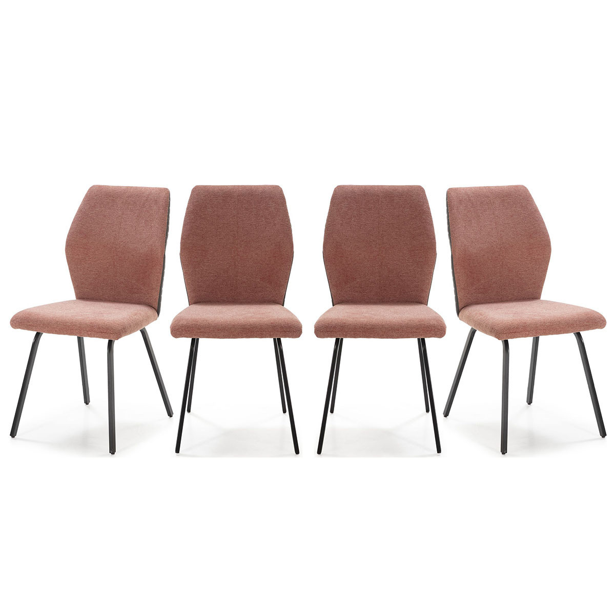 GARANCE - Lot de 4 chaises en tissu orange corail et simili