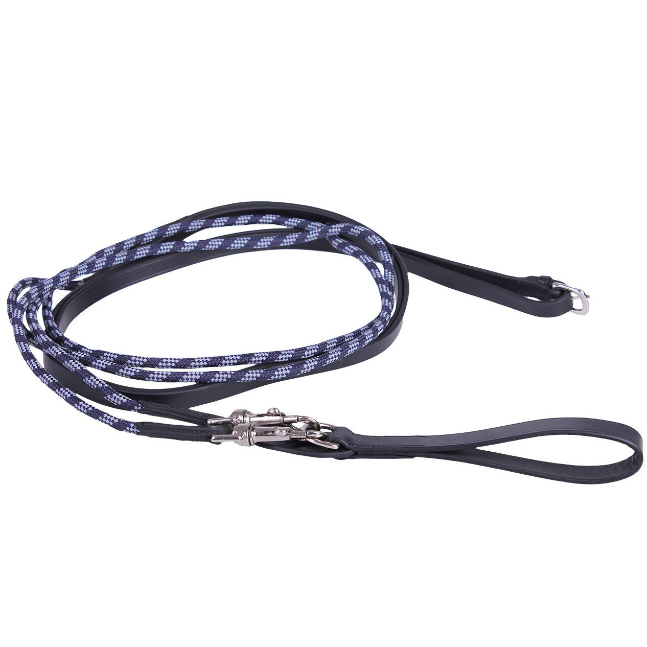 Rênes allemandes en cuir décorées d'un cordon bicolore. Il est possible de les attacher sur une sangle et sur une bavette. Spécifications Composition: Cuir, Polypropène - Bouclerie en acier inoxydable de couleur argent - Finitions avec cordon bicolore - Attache pour sangle en cuir