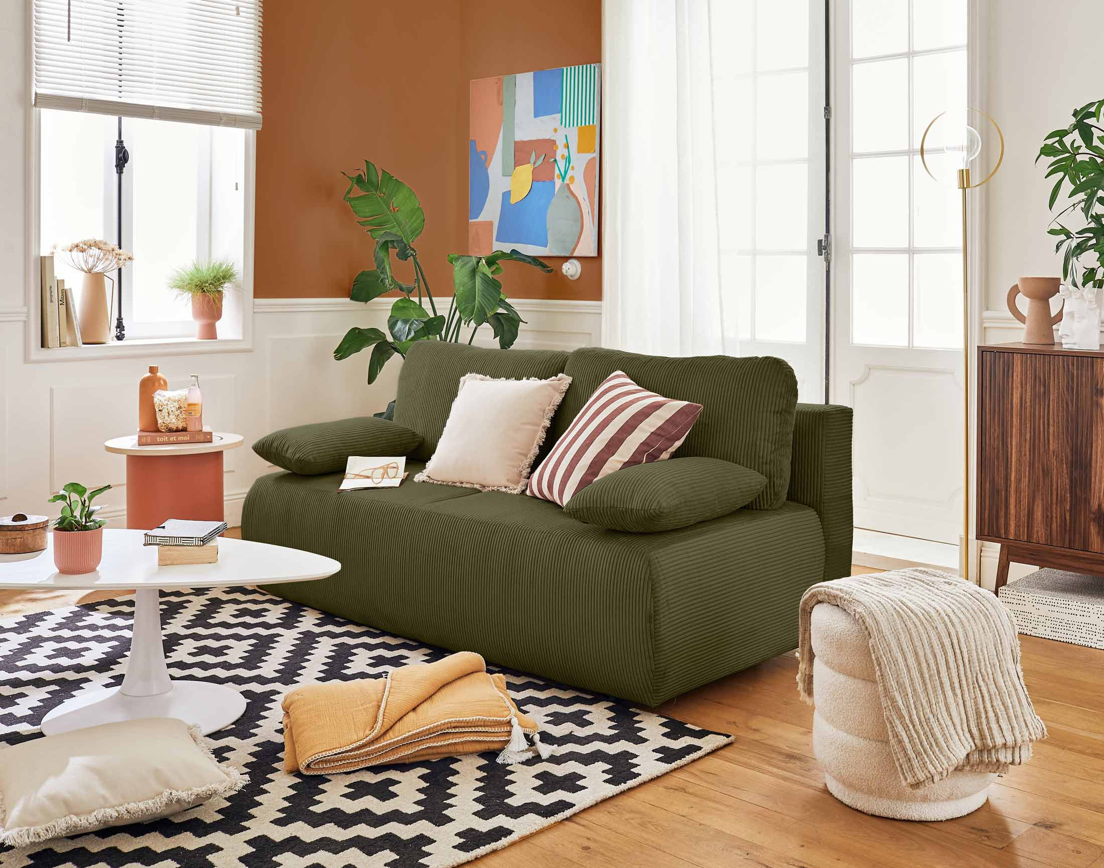 Loutro - canapé 3 places - convertible avec coffre - en velours côtelé