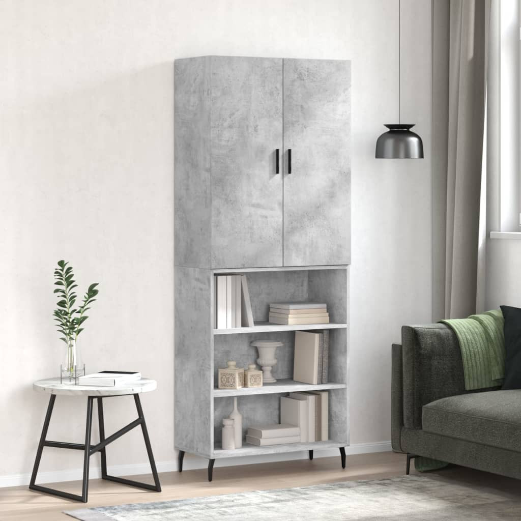 vidaXL Buffet haut Gris béton 69,5x34x180 cm Bois d'ingénierie