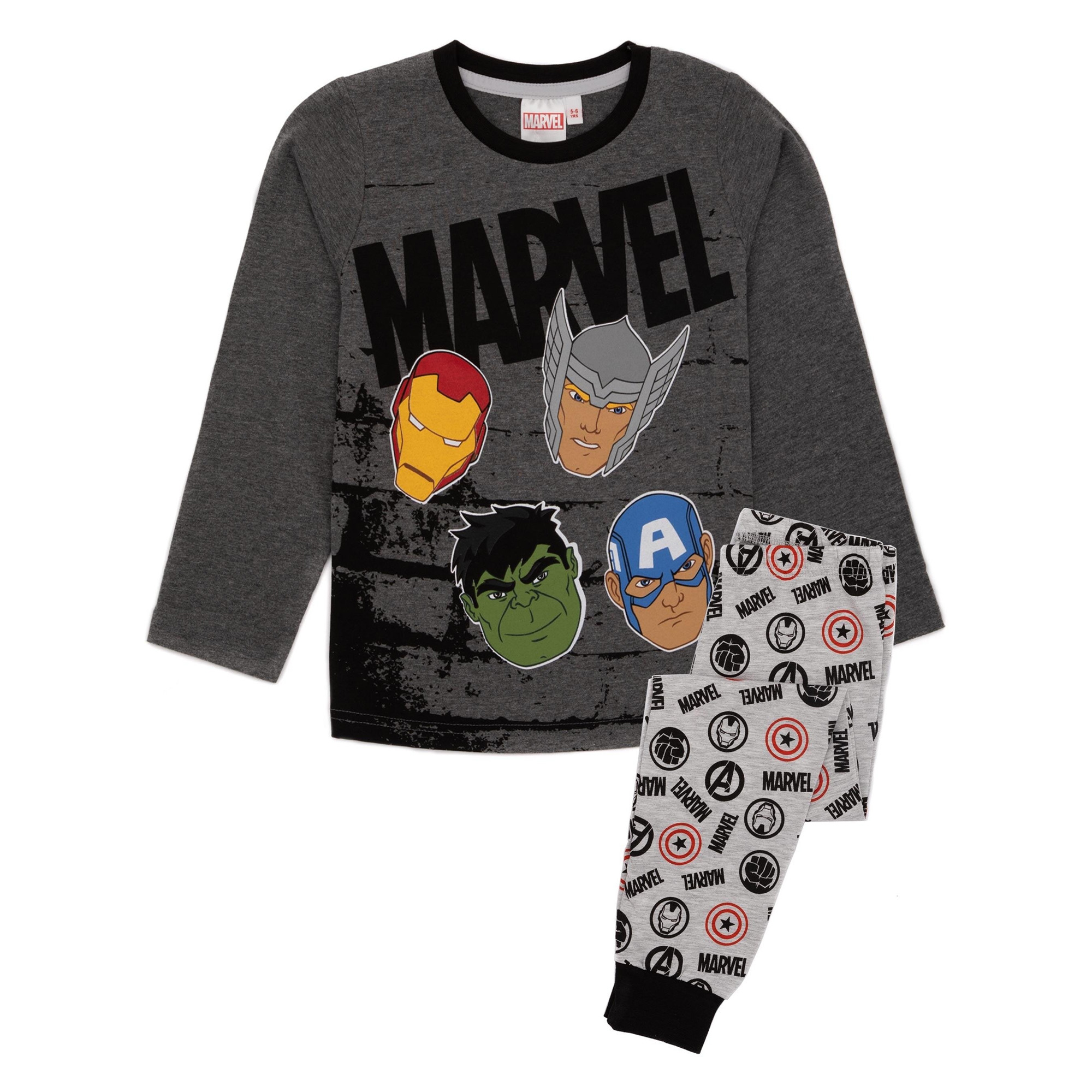 Contenu: 1 Bas, 1 T-shirt. Personnages: Captain America, Hulk, Iron Man, Thor. Design/motif: Têtes, Logo, Imprimé. Coupe: Régulière. Ourlet: Ajusté. Encolure: Col arrondi. Type de manches: Manches longues. Taille: Élastiquée. Fermeture: À enfiler. Produit sous licence officielle. Composition: Coton, Polyester.