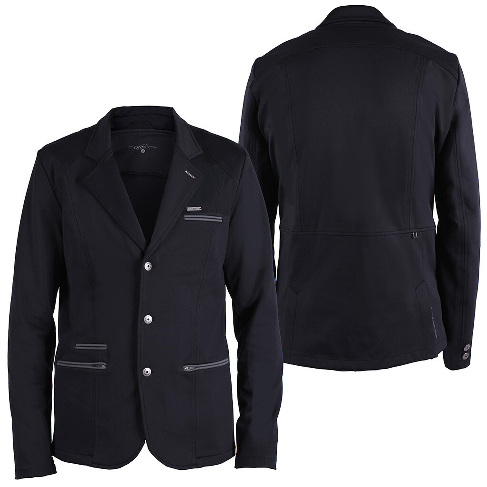 La veste de compétition classique Perry est pourvue de petits liserés gris le long des poches. La veste possède deux poches horizontales à fermeture éclair ainsi que deux fausses poches. Le badge QHP en haut de la poche au niveau de la poitrine apporte une belle finition à la veste. Sur la fente droite est imprimé ‘’Quality Horse Products’’.  Vous voulez savoir quelle est la taille la plus adaptée ? Consultez le tableau des tailles. Composition du tissu : 50% polyester, 45% nylon, 5% élasthanne - Veste d'équitation pour hommes en tissu extensible léger - Veste d'équitation en tissu 280 g/m². - Deux poches zippées horizontales et deux poches en faux paspel - Finition avec un passepoil gris sur les poches - Boutonnière décorative sur le revers droit - Deux boutons sur chaque manche - Lavable en machine à 30 degrés. Lavez la veste de compétition dans un sac à linge. N'utilisez pas d'adoucissant et ne séchez pas en machine