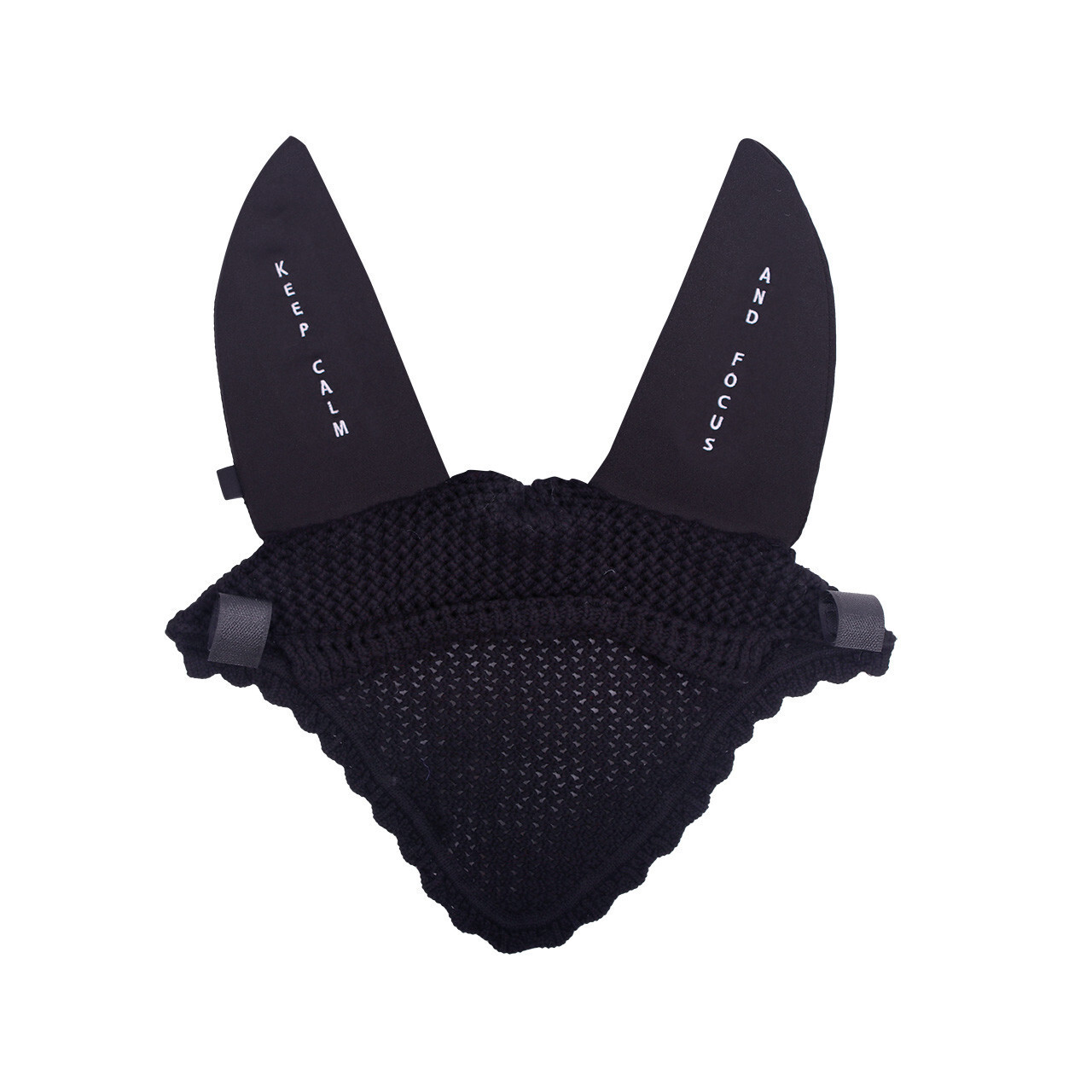 Bonnet amusant avec un texte à l'arrière "Keep calm and focus ". Le tissu autour des oreilles a un effet insonorisant qui donne à votre cheval plus de calme et de tranquillité. Comme le bonnet peut être fixé à l'aide de deux boucles, il peut également être utilisé avec des tétiêres larges. Souhaitez-vous connaître la taille à choisir pour votre cheval ? Consultez le tableau des tailles. Composition du tissu en partie crochetée : 65% polyester, 35% coton Composition du tissu des oreilles : 100% polyester - Bonnet amusant avec broderie " Keep calm and focus " à l'arrière de l'oreille - Oreilles en tissu insonorisant - Equipé de deux boucles sur les côtés pour attacher le bonnet - Peut également être facilement fixé à l'aide d'une large tétiêre - Lavable en machine à 30 degrés. Lavez le bonnet dans un sac à linge et, de préférence, n'utilisez pas d'adoucissant. Ne pas mettre au sèche-linge.