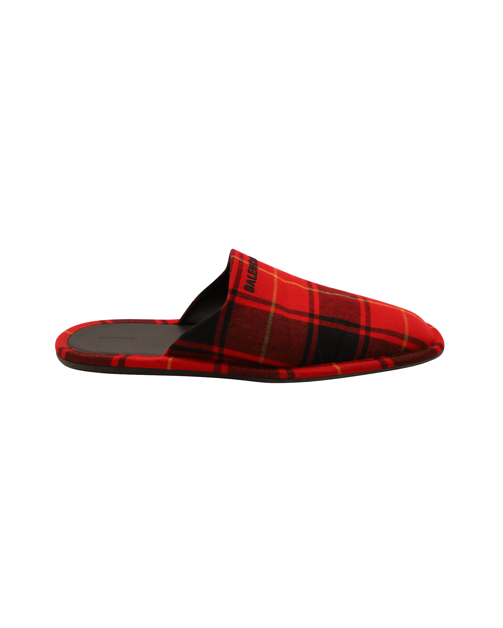 Balenciaga Chaussons en Flanelle Tartan à Logo Brodé en Laine Rouge