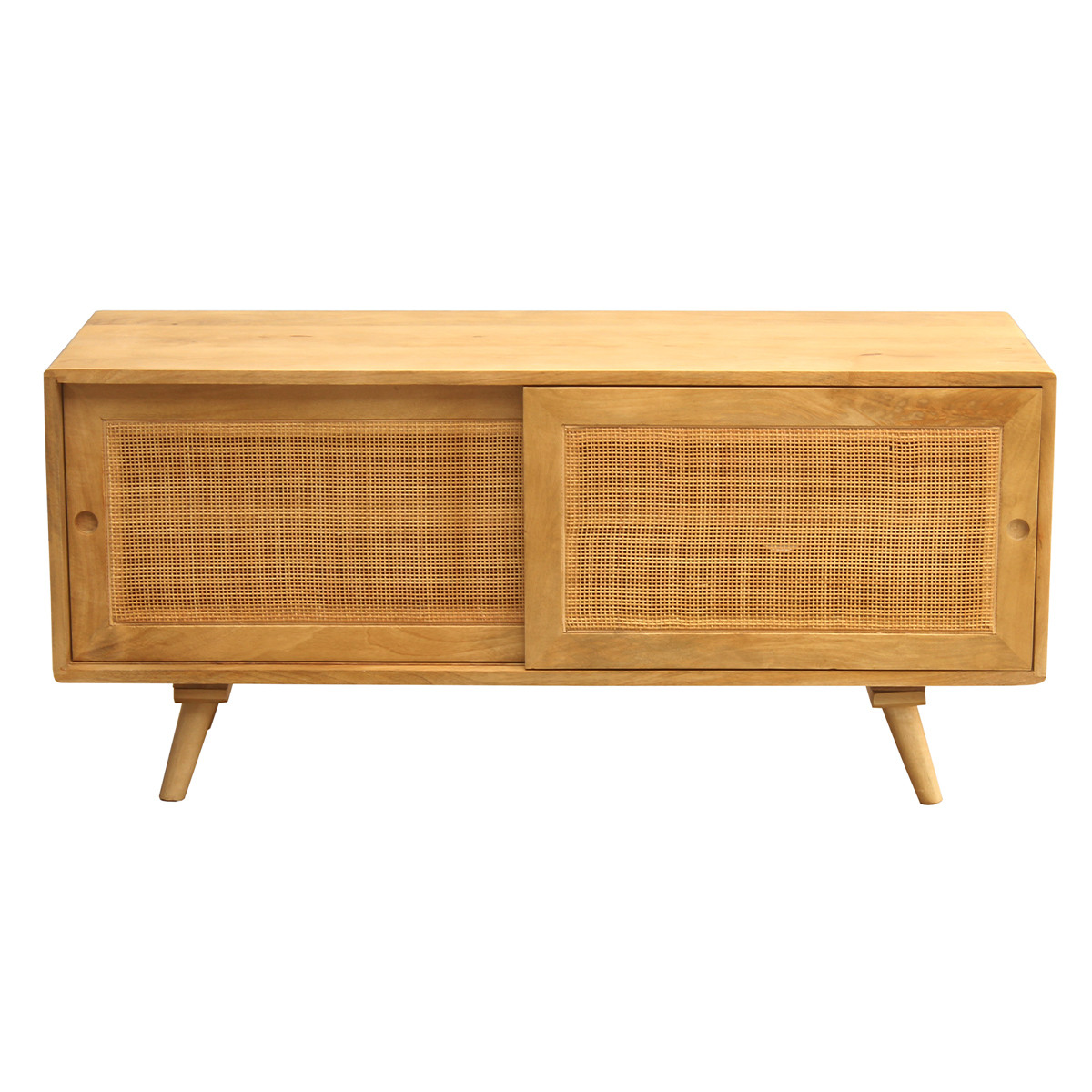 Meuble TV en bois manguier massif et cannage rotin L110 cm ACANGE