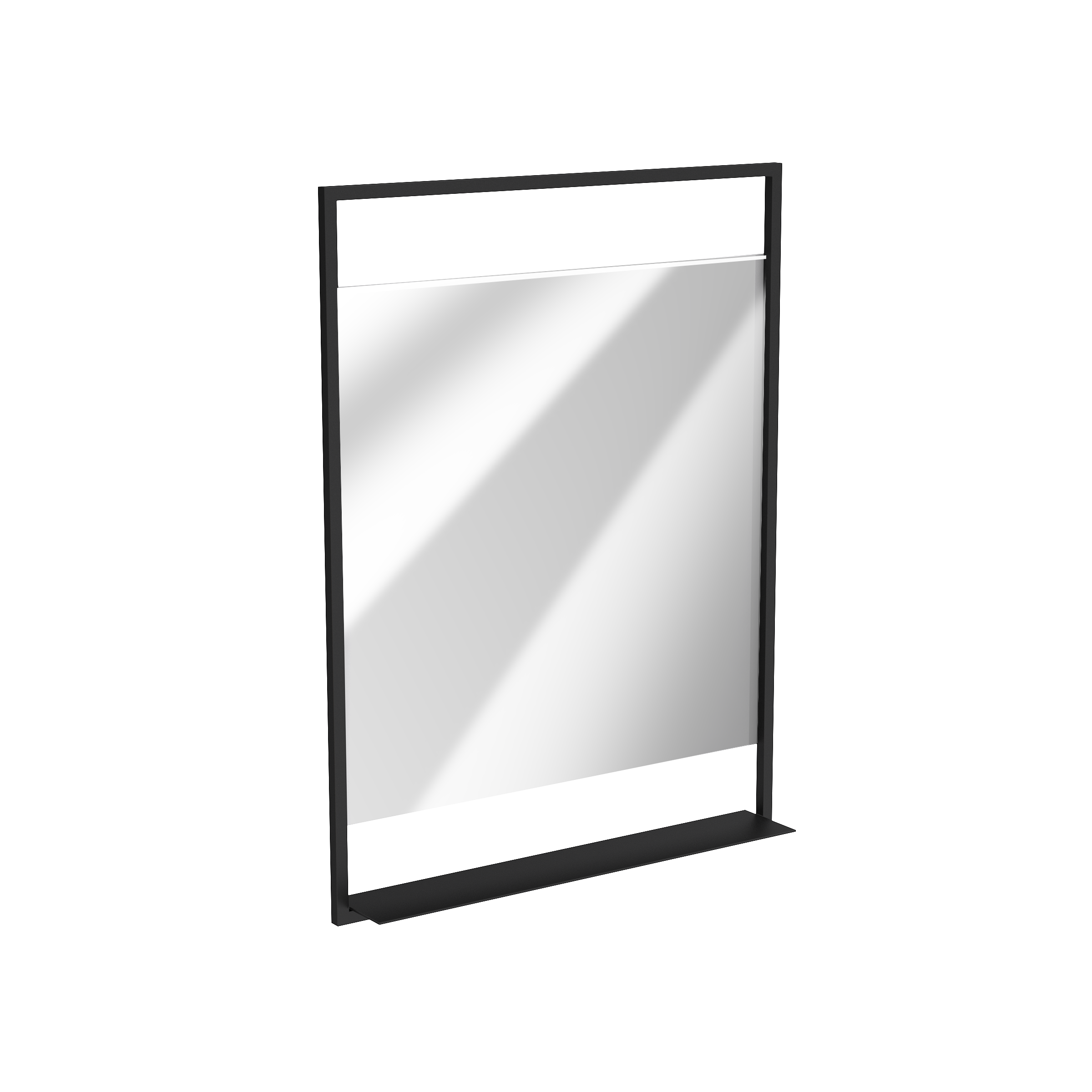 • Miroir avec cadre et tablette en métal laqué noir mat