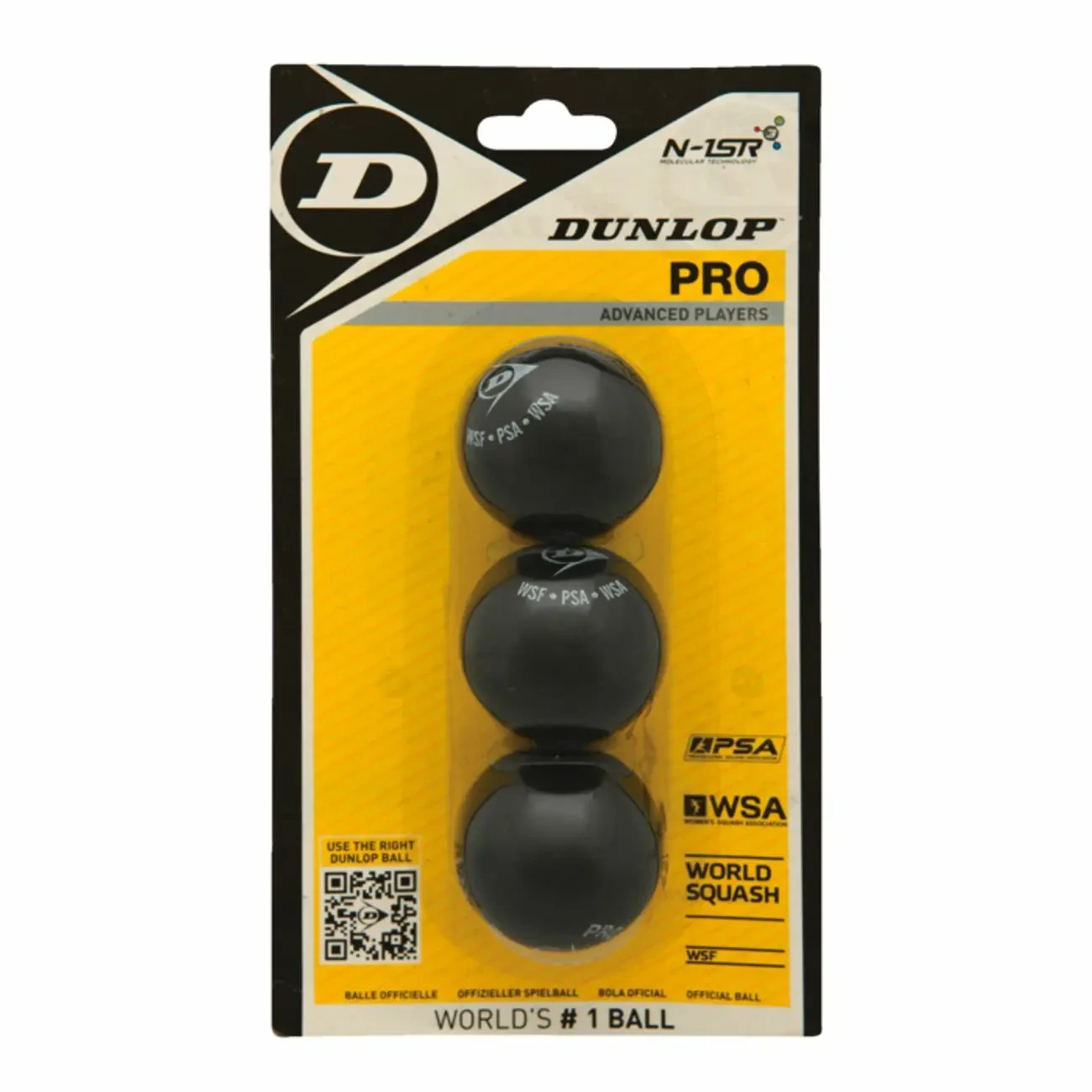 Lot de 3 balles de squash Dunlop pro blister Balle squash Dunlop 2 points jaune: - Balle officielle des compétitions, - c'est La Balle de squash.