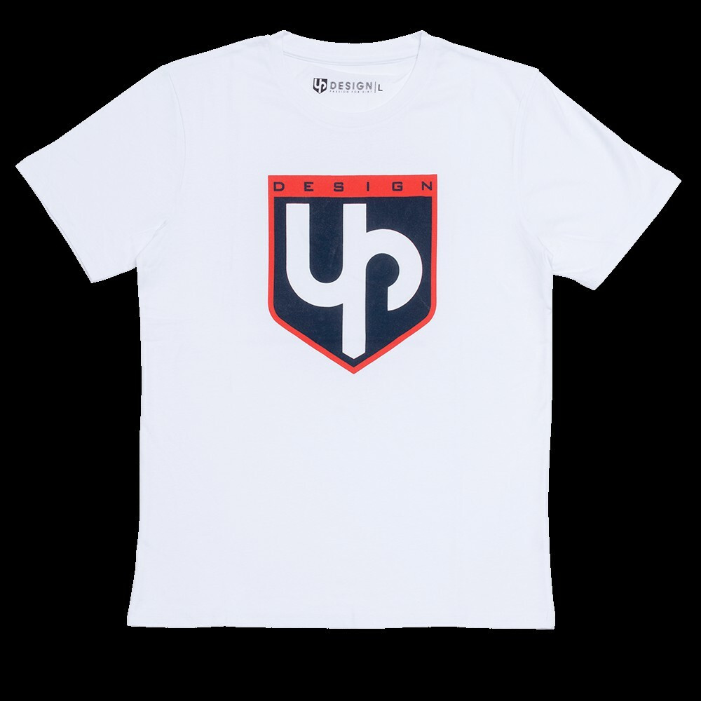 Tee-Shirt Manches Courtes UP Design L Caractéristiques T-shirt col rond Coupe fluide Logo Imprimé Up Design 100% Coton Blanc Existe en S / M / L / XL / XXL