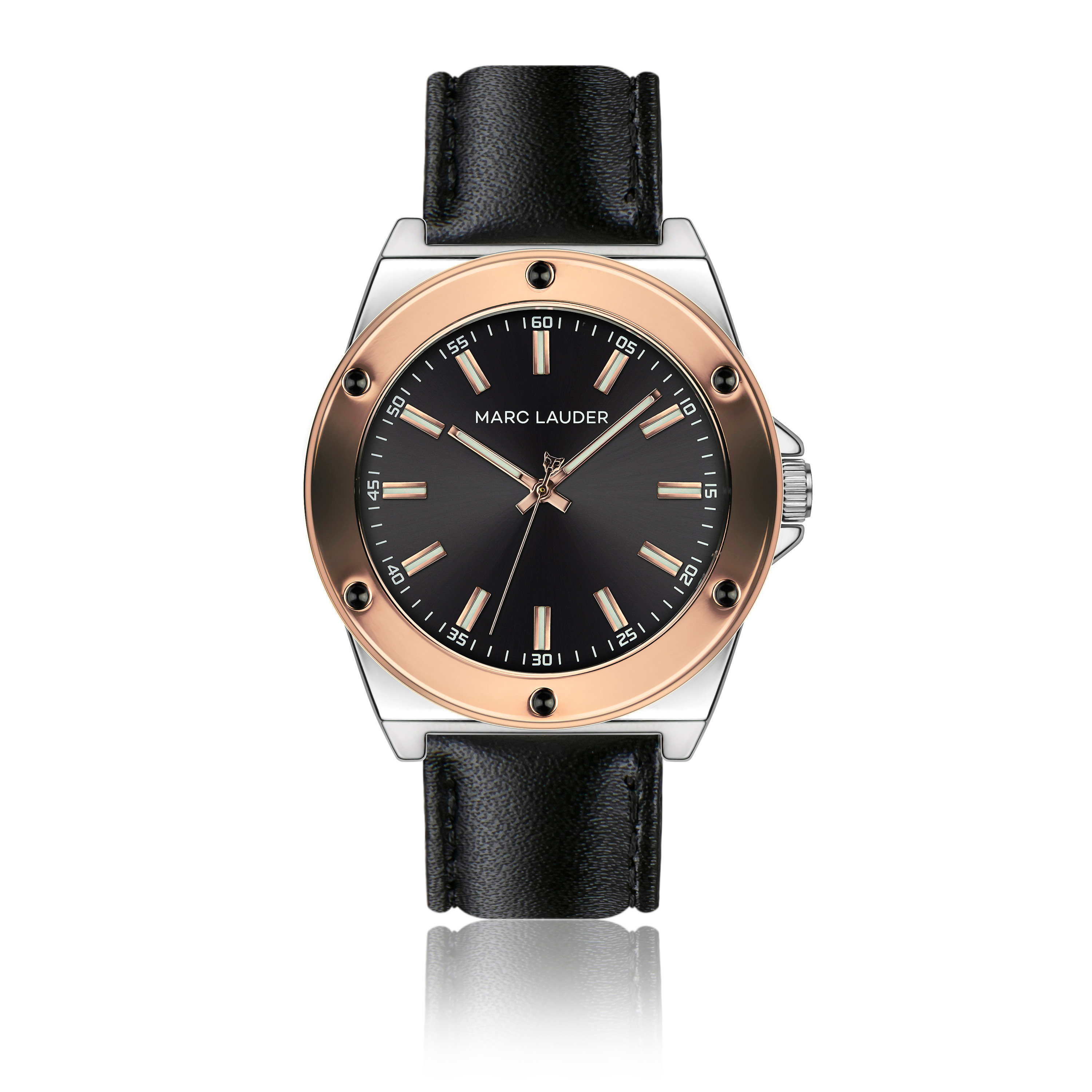 Profondément ancrée dans la culture urbaine et contemporaine, Marc Lauder présente la série de montres Berlin. La lunette en or rose et le cadran noir pur complèteront n'importe quelle tenue. Poursuivant ses caractéristiques d'ingénierie précise, la collection Berlin possède des index rectangulaires luminescents avec des aiguilles assorties pour assurer une mesure précise de l'heure même la nuit. Conçu en Europe et équipé d'un mécanisme à quartz japonais, ce garde-temps garantit sa robustesse.