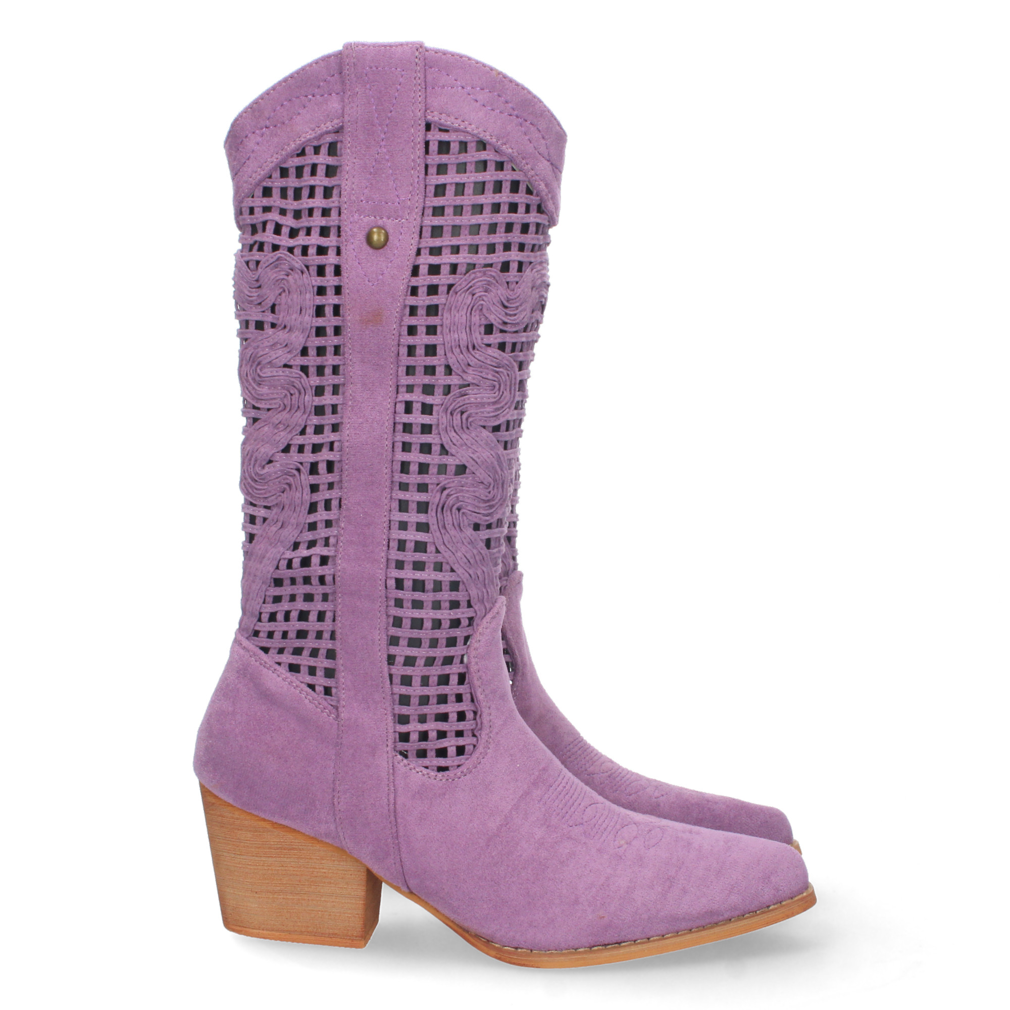 Shoes and Blues Botte à Talon Haut Ajourée et Fermeture Éclair YZ22-145 Violet clair