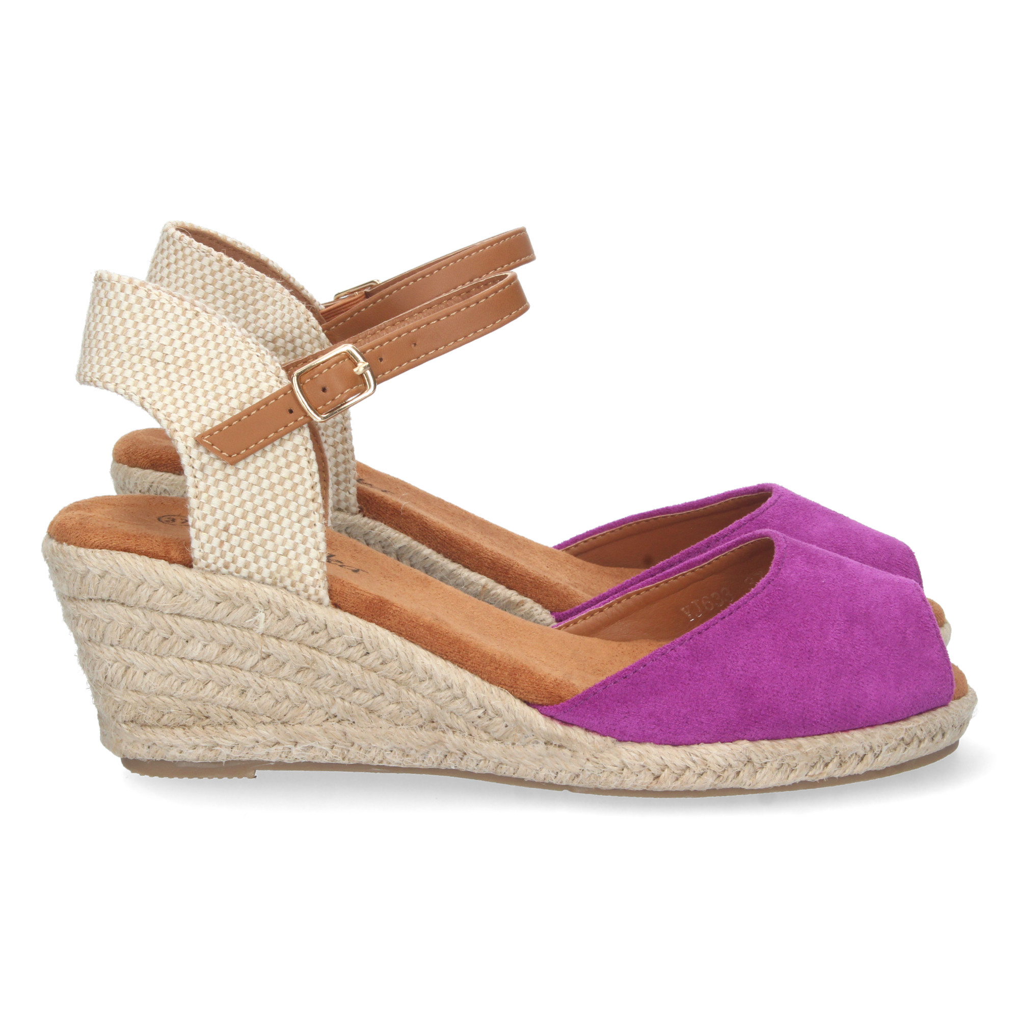 Sandale compensée pour femme, style valencien, doublée en jute, tige ouverte et fermeture à boucle, printemps été 2023
