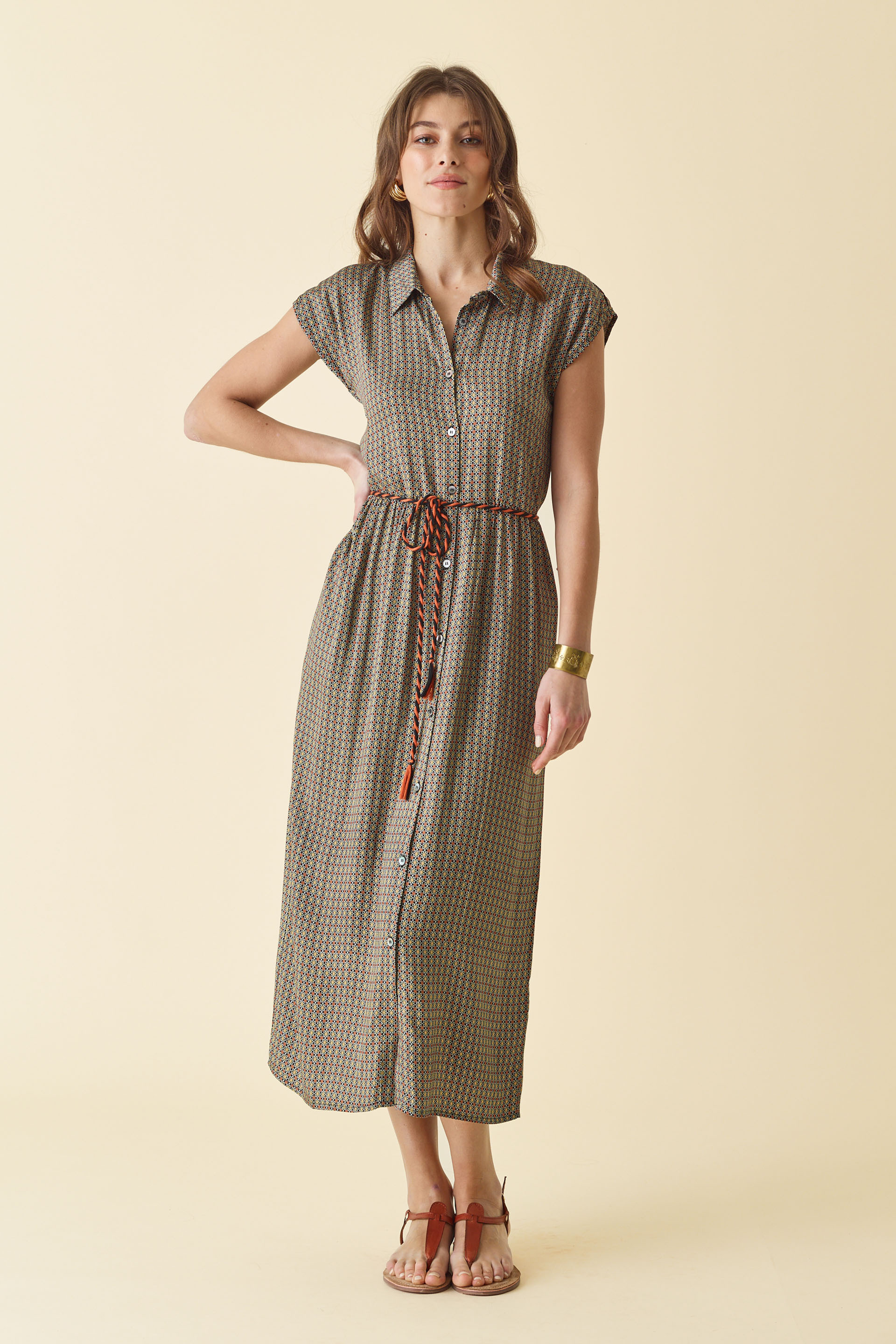 Information sur l'offre : A la fois stylée et fluide, misez sur cette robe casual chic à l'imprimé minimaliste 'Zellige' ! Robe chemisier longue, manches tombantes, découpe taille avec fronces, ceinture tresse bicolore, coupe droite. Longueur : 127cm. Si vous hésitez entre deux tailles, nous vous conseillons d'acheter la taille en dessous de votre taille habituelle. Notre mannequin mesure 1m72 et porte une taille 0 ou 36 pour les hauts, taille 36 pour les bas Composition : 100% Viscose