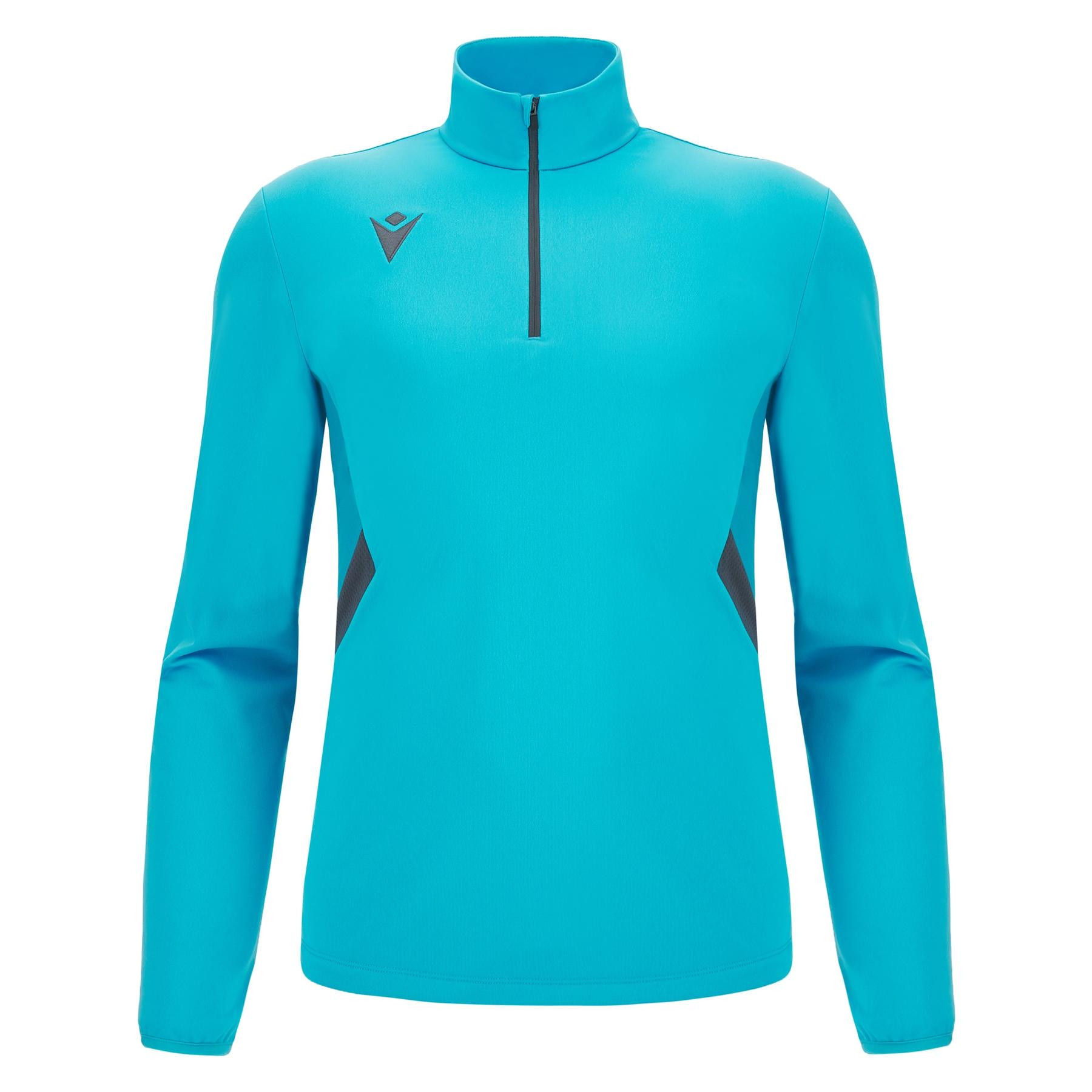 Haut d'entraînement en tissu Polydry. Caractérisé par un col avec fermeture à glissière 1/4 en nylon. avec curseur autobloquant et tour de cou. Présence d'empiècements en micromesh sur les épaules et les côtés pour favoriser la respirabilité. La bas est doté d'un cordon coulissant pour régler la coupe et améliorer l'adhérence et le confort dans les mouvements. Polydry: dans ce tissu. la construction extérieure en interlock assure un ajustement confortable. tandis que l'intérieur brossé procure une sensation de chaleur agréable.