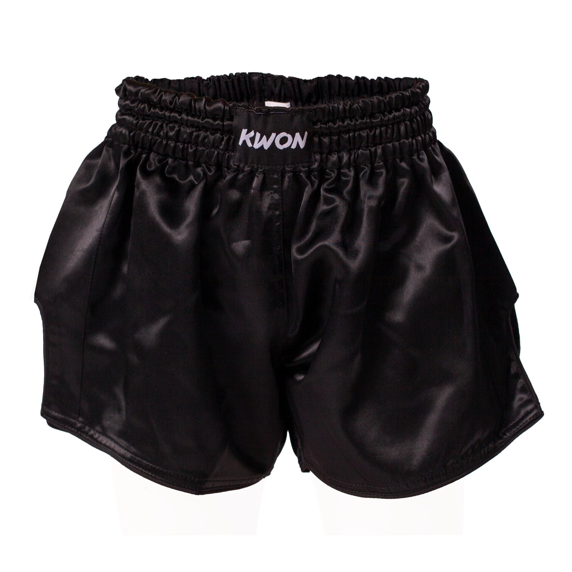 KWON CLUBLINE Short de boxe thai Short de boxe thaïlandais KWON CLUBLINE pour enfants et débutants de très bonne facture à un prix raisonnable. Short idéal pour le kickboxing, le muay thai, la boxe ou le MMA Pantalon de boxe thaï noir en 100% polyester brillant avec bandes latérales colorées La taille large élastique garantit un ajustement parfait. Avec fentes latérales pour une liberté de mouvement optimale Matière : 100% polyester Couleurs : noir, noir/rouge, noir/bleu, noir/or, noir/blanc Tailles : XS, S, M, L, XL, 140, 152