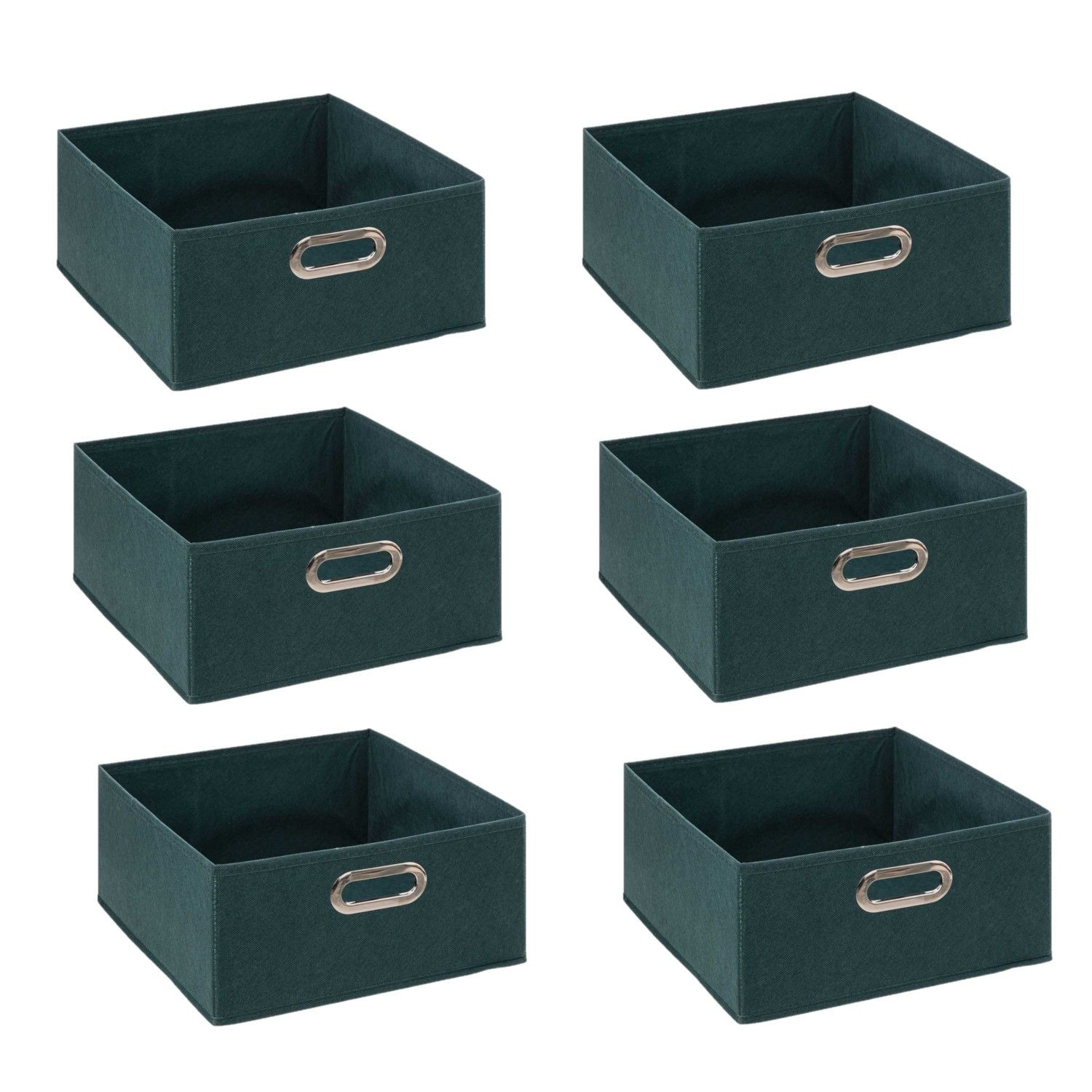 Lot de 6 boites de rangement en tissu - 31x31x15cm - Bleu Pétrol