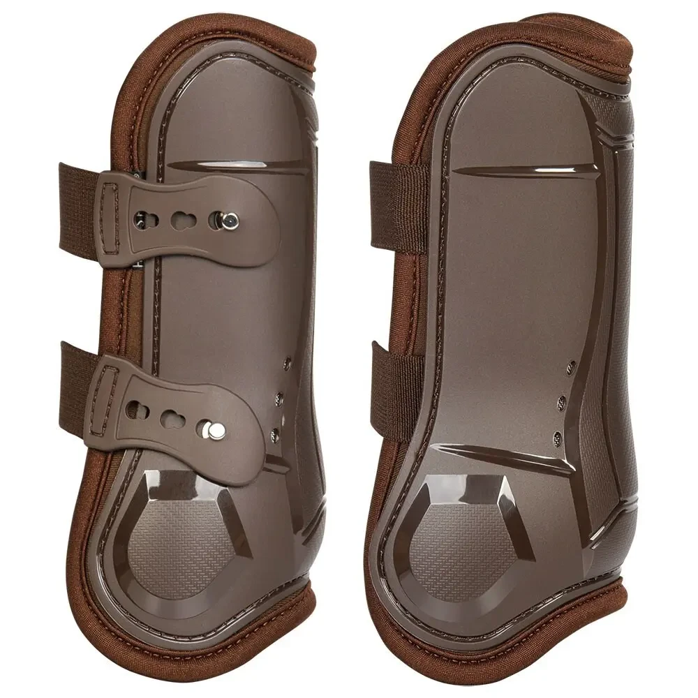 Belles protections qui se caractérisent par un excellent ajustement. Avec fermetures élastiques et solide. Grâce à la fermeture avec bouton, aucun velcro n'est requis. Les trous de ventilation en "maille métallique" dans la coque assurent la ventilation et l'aération.L'ajustement optimal donne au cheval une grande liberté de mouvement. La coque en TPU dur protège contre les coups. Cette protection a un épaississement supplémentaire sur le tendon et sur le boulet pour une protection complète.Longueur arrière: 18 cm.Cette protection est spécialement conçue pour les antérieurs (postérieurs voir numéro d'article 33200014).