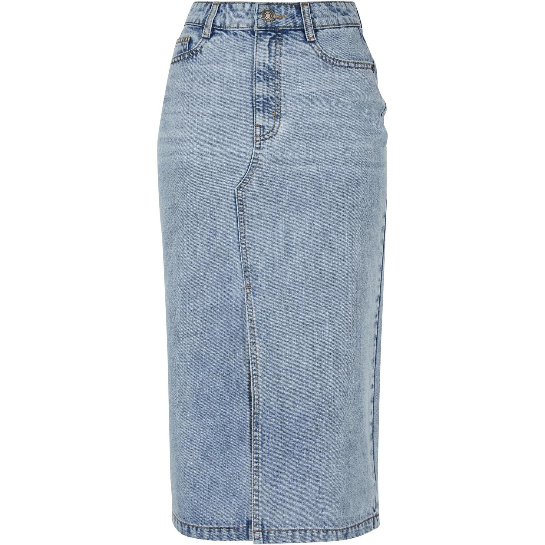 Conçue avec une coupe asymétrique sur le devant et une fente haute, cette jupe en denim longue et droite attire l'attention. Sa taille est dotée de passants, de deux poches latérales, d'un bouton et d'une fermeture à glissière. Son style est complété par deux poches arrière plaquées. La jupe est réalisée en denim de coton lisse et présente une coupe régulière. Tissu extérieur 1 : 100 % coton, 11 oz