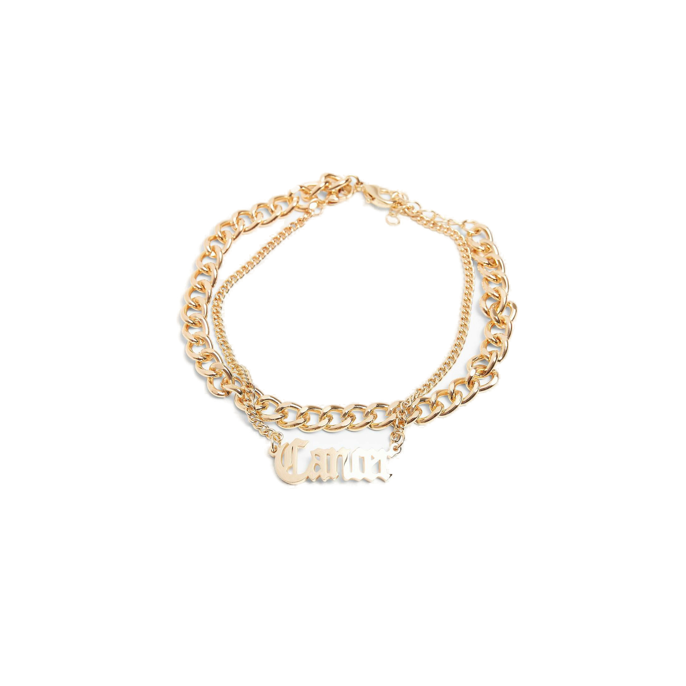 Le bracelet de cheville à double rangée est orné d'un pendentif du zodiaque en écriture cursive ancienne et constitue un bijou individuel. Les maillons de la chaîne de bordure utilisés sont fabriqués en différentes tailles, tandis que l'option de taille générale offre 22 cm et 25 cm de longueur. Pour des ajustements plus fins, une chaîne d'extension de 3 cm de long a été ajoutée. Le matériau utilisé est le fer et l'acier inoxydable. Accessoires 2 : 80% Fer 20% Acier inoxydable,gsm