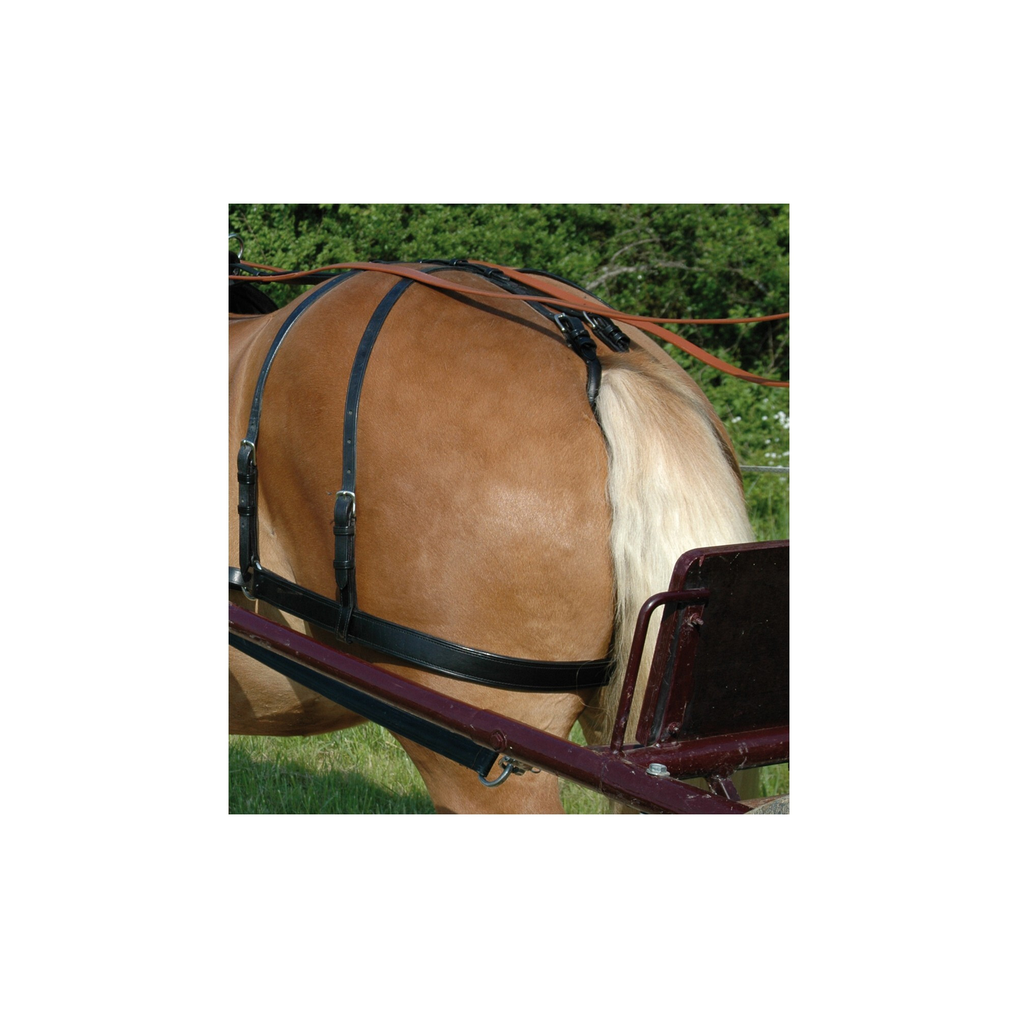 Courroies de reculement pour attelage en cuir. Les courroie de reculement sont à fixer sur les anneaux de l’avaloire afin de garder l'attelage et la voiture en place lors du freinage ou en descente. Vendues par paire, elles ne s'utilisent qu'en attalage simple.