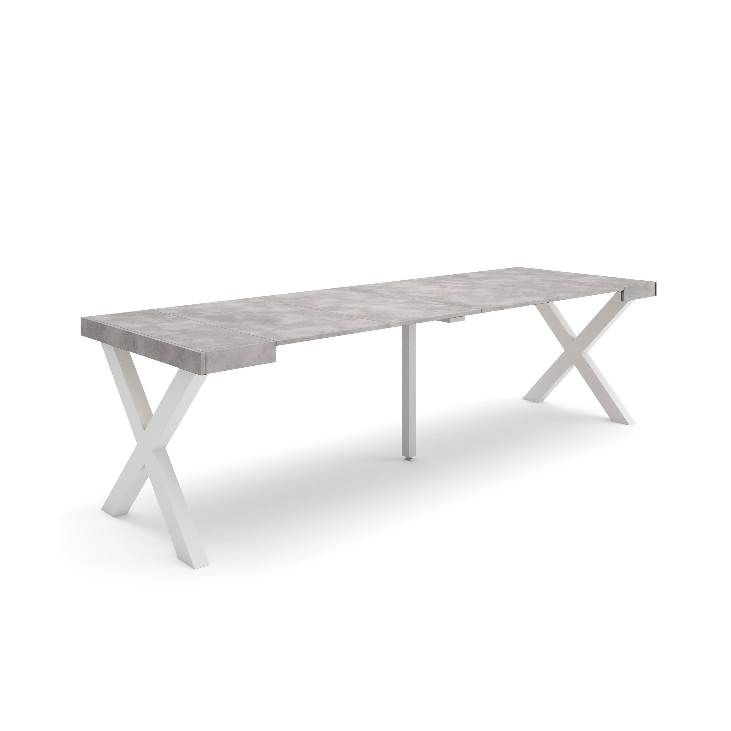 Table console extensible, 262x90x73cm, Pour 12 personnes, Pieds bois massif, Ciment