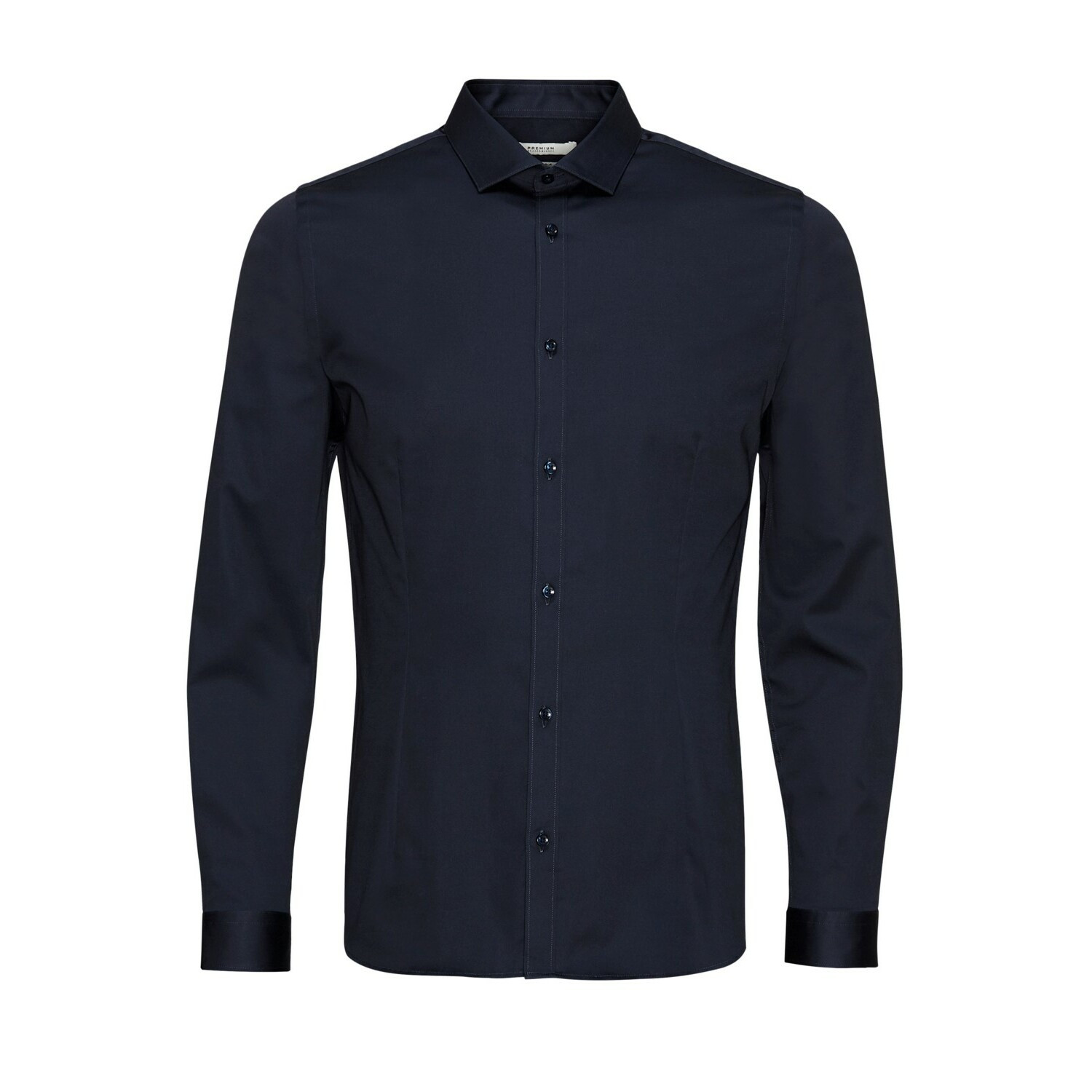 SUPER SLIM CHEMISE JACK&JONES PREMIUM - Chemise PREMIUM - Super slim fit - Stretch - Col classique - Patte de boutonnage classique - Poignets boutonnés réglables - Ourlet arrondi - Le mannequin porte la tailleL et mesure 184cm. Son tissu satiné exclusif rend ce vêtement doux au toucher et lui octroie une finition soyeuse, un brillant luxueux et un toucher confortable. Sa patte rectangulaire classique et son col italien sont encadrés par une silhouette moderne et ultra ajustée. 98% Coton, 2% Élasthanne Lavage en machine à 40 °C maximum sur un programme doux Ne pas utiliser de Javel Ne pas passer au sèche-linge Fer réglé sur une température basse. Température maximum : 100 °C Lavage à sec (sauf trichloroéthylène) Suspendre pour le séchage