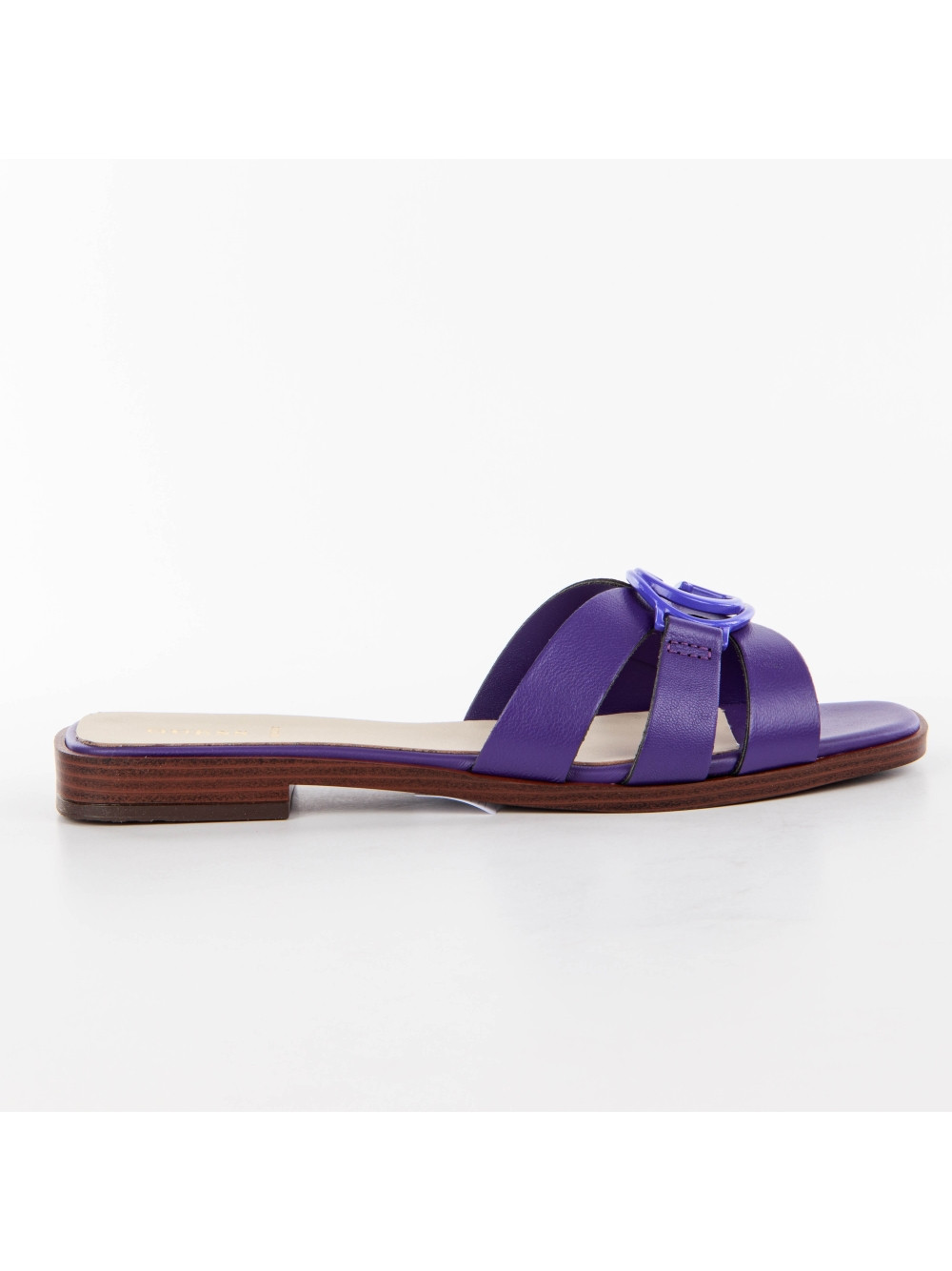 Claquette Guess Symo Femme Violet cuir. Authentique Chaussure de la marque Guess - design streetwear/sportswear de Guess - Guess pour Femme fashion, parfait pour la vie de tous les jours - Claquette Guess de couleur Violet s'associe parfaitement avec le reste de votre dressing - matiere cuir confortable - Boucle classic - Symo - Synthétique