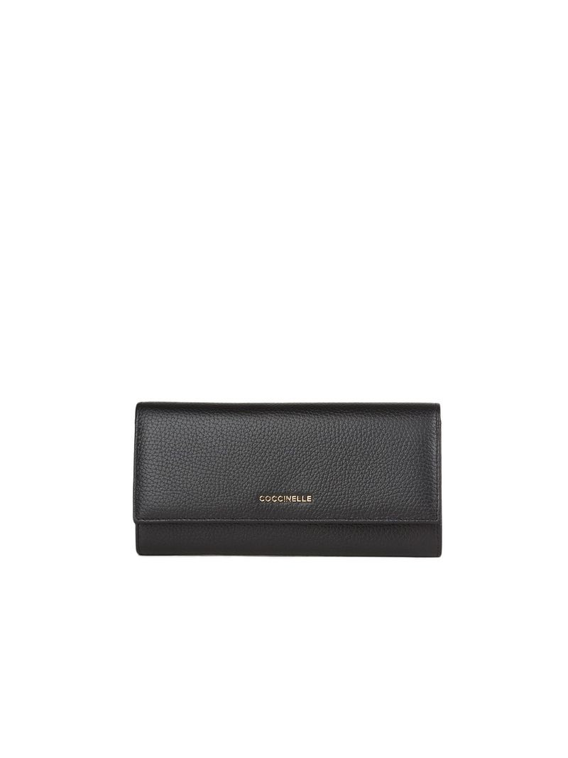 Portefeuille souple métallisé en cuir grainé