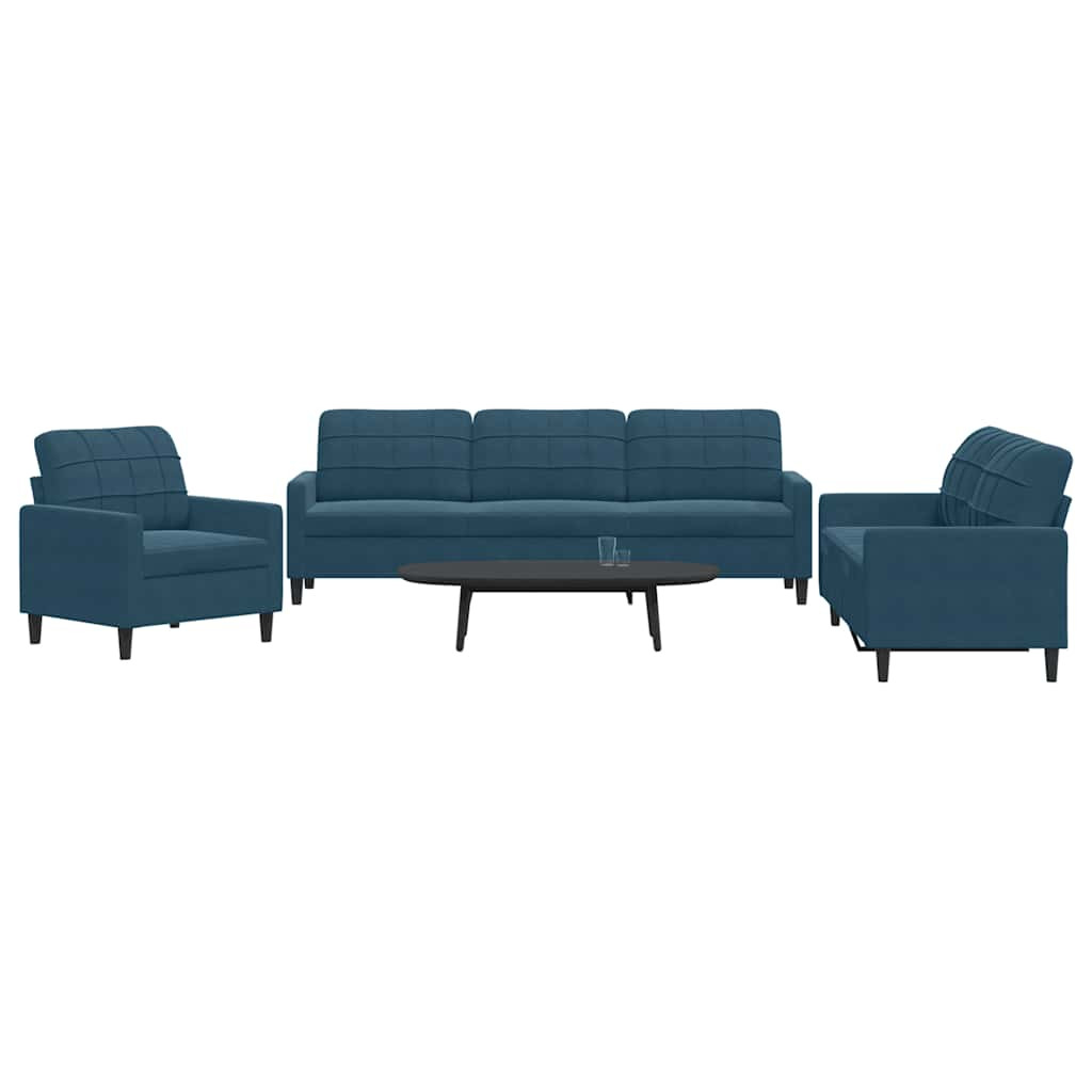 vidaXL Ensemble de canapés 3 pcs avec coussins Bleu Velours