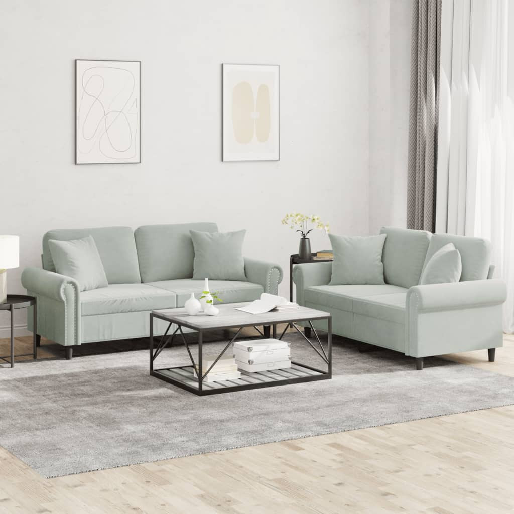 vidaXL Ensemble de canapés 2 pcs avec coussins gris clair velours