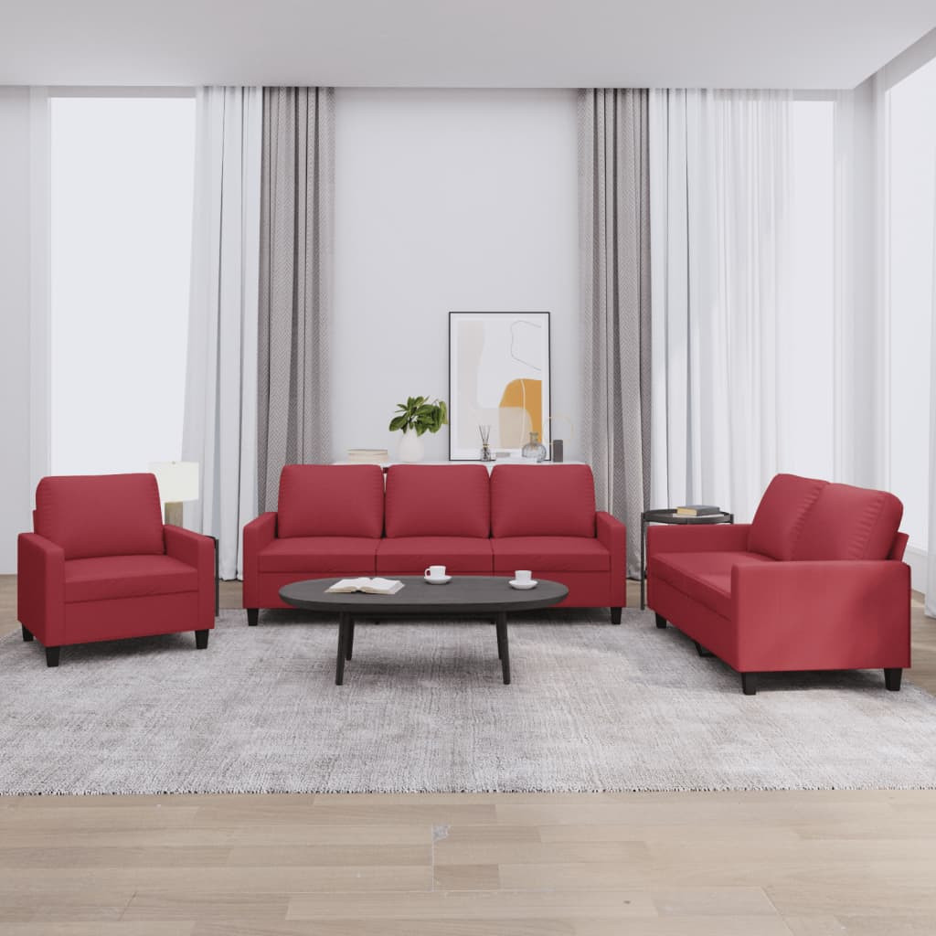 vidaXL Ensemble de canapés 3 pcs et coussins Rouge bordeaux Similicuir
