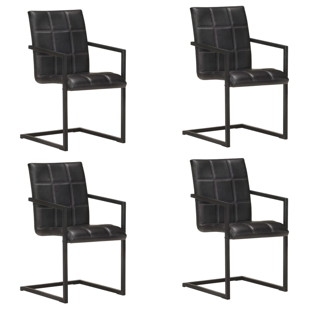 vidaXL Chaises à manger cantilever lot de 4 noir cuir véritable
