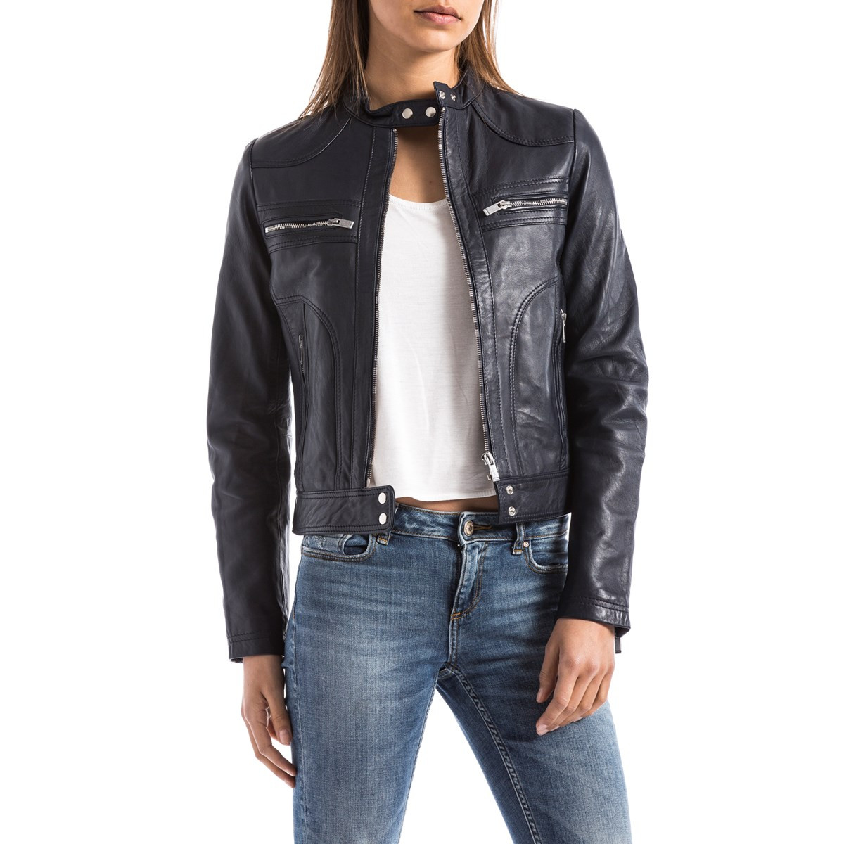 Blouson en cuir coupe courte légèrement cintrée, en cuir de mouton