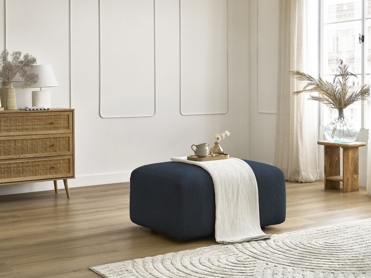 Pouf TINA tissu bouclette Bleu foncé BOBOCHIC