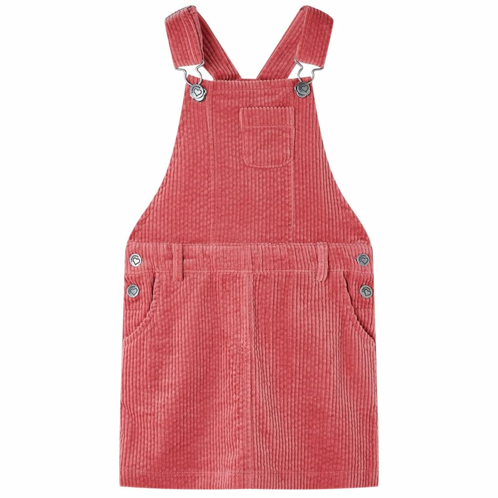 Cette robe salopette pour enfants comporte des bretelles réglables, des boutons sur les côtés et des poches plaquées utilitaires. La robe salopette pour enfants est composée à 100 % de velours côtelé de coton, offrant un confort supplémentaire.