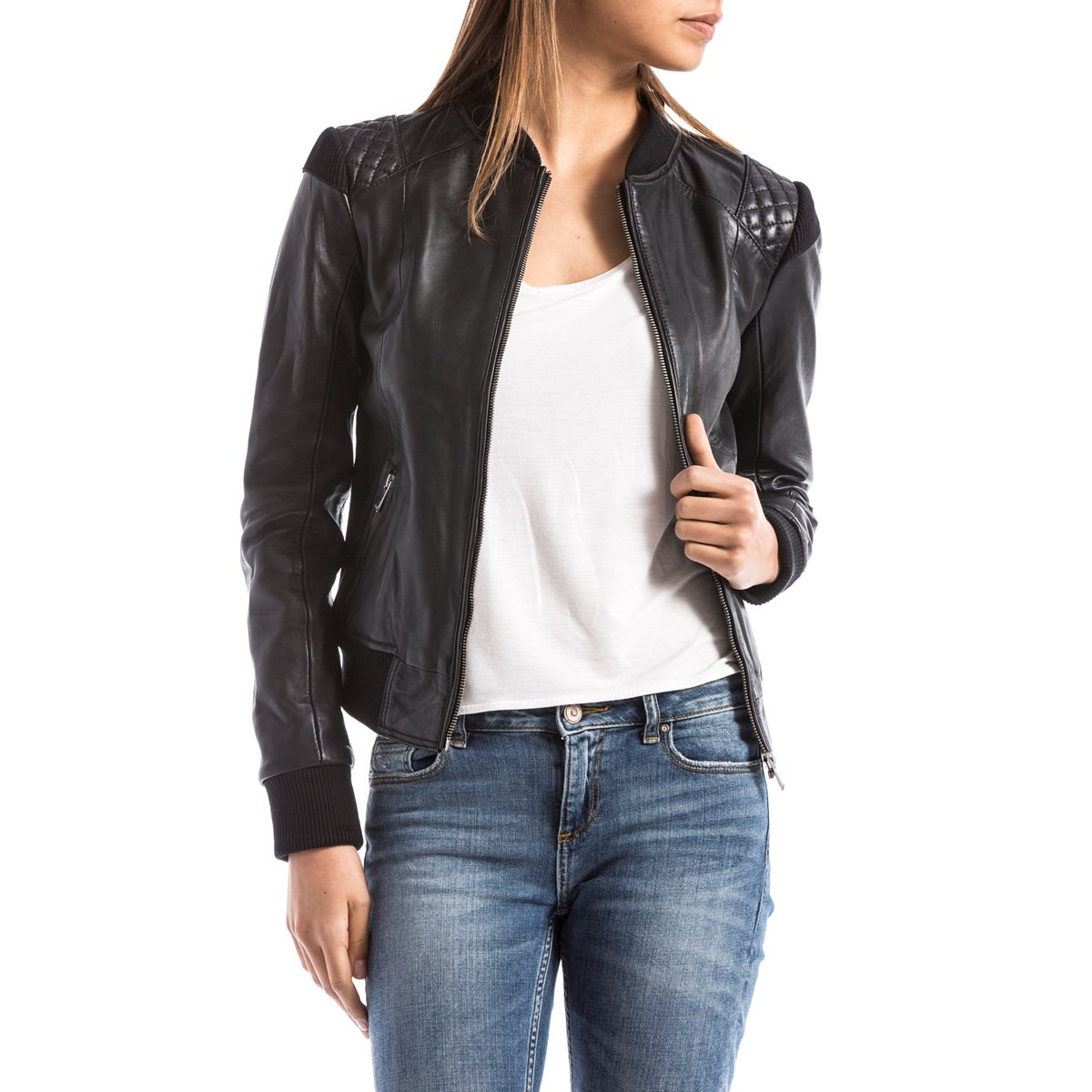 BLUE WELLFORD - Blouson cuir véritable coupe courte ALBA