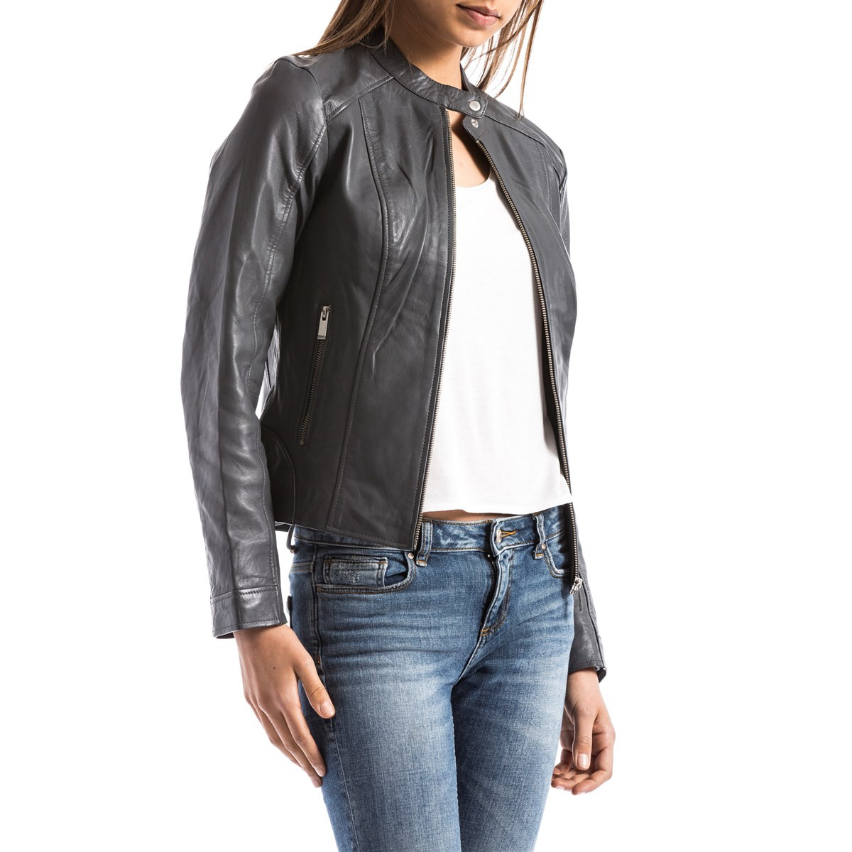 Veste en cuir 100% mouton, coupe courte et ajustée près du corps, c’est une pièce 4 saisons que vous pourrez porter toute l’année.