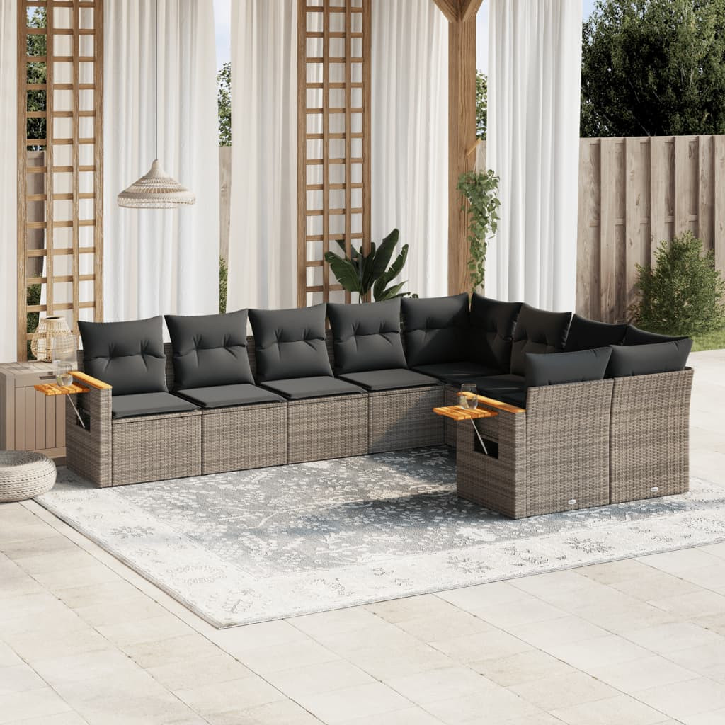 vidaXL Salon de jardin 9 pcs avec coussins gris résine tressée