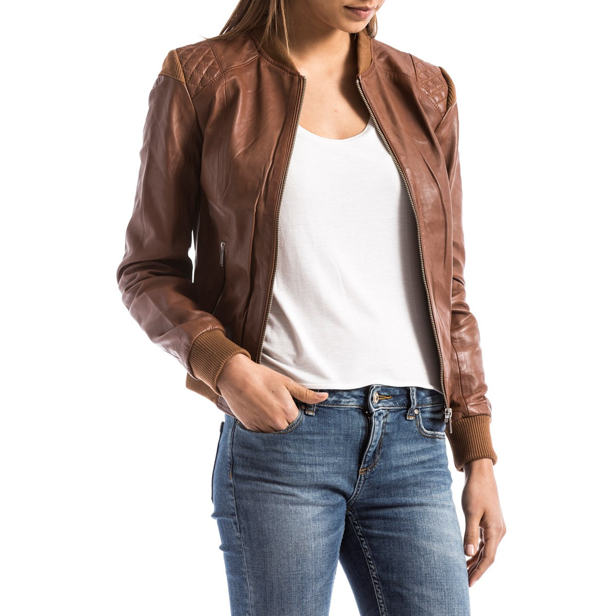 BLUE WELLFORD - Blouson cuir véritable coupe courte ALBA