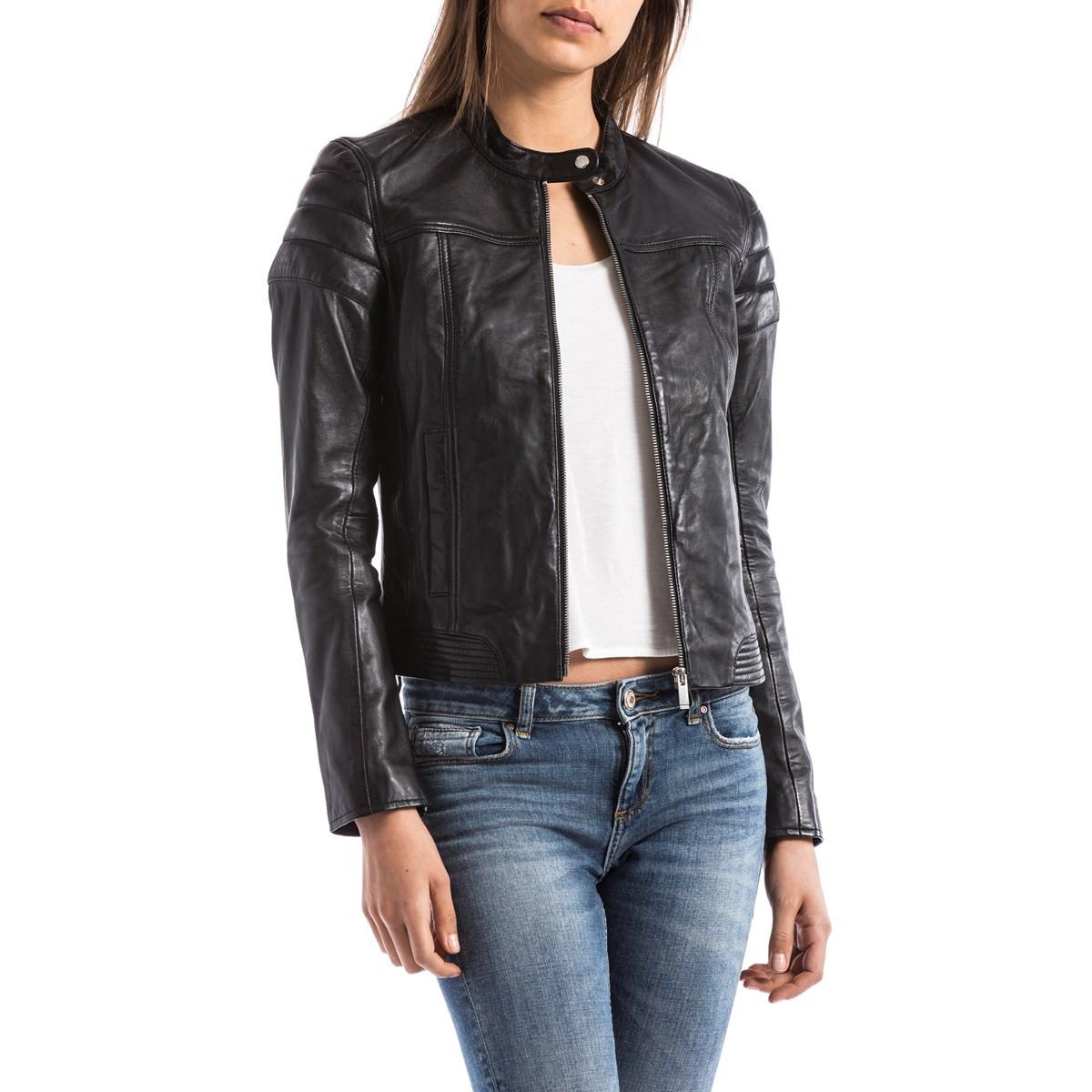 BLUE WELLFORD - Blouson cuir de mouton col motard ADDA