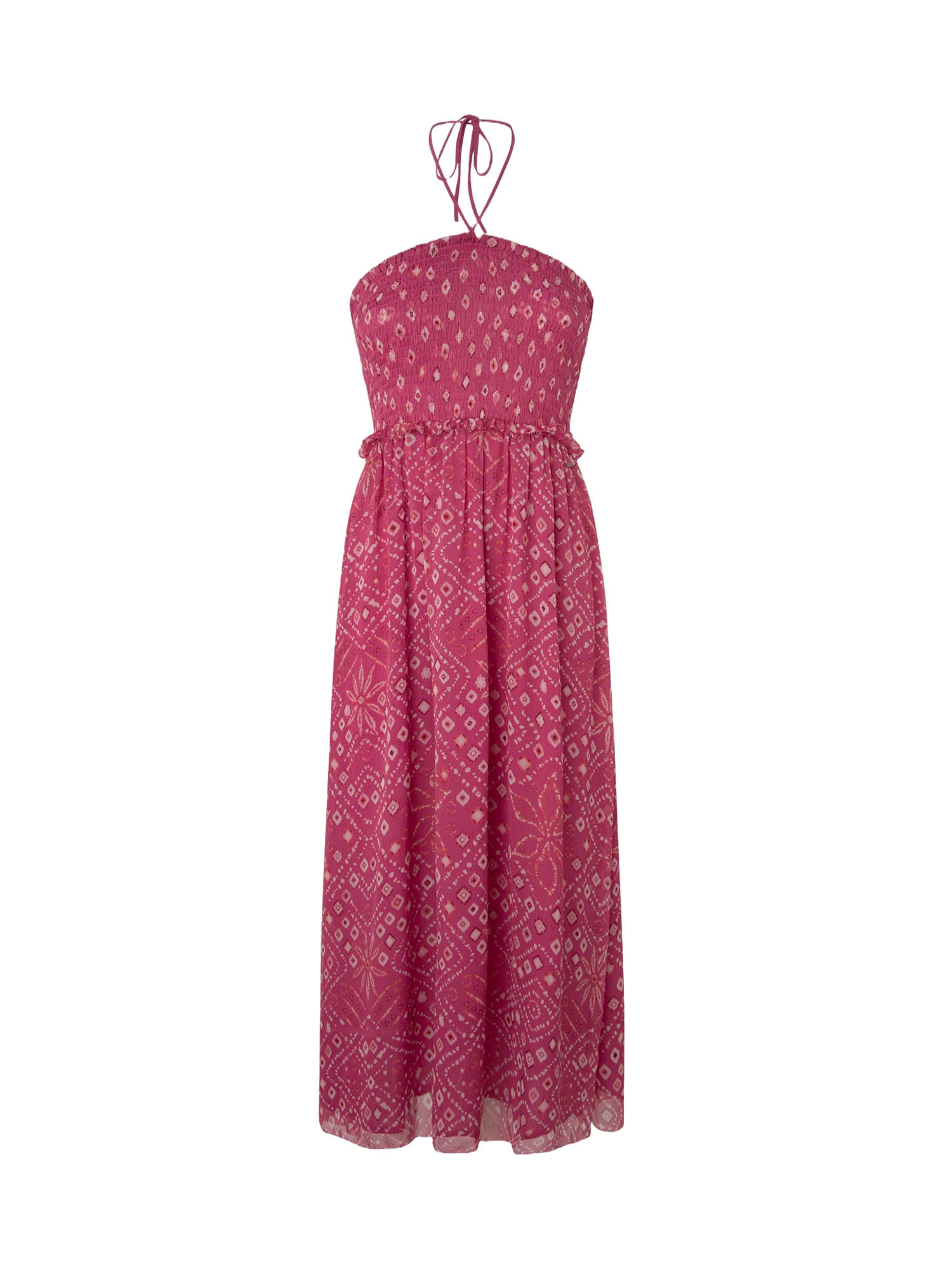 Description : robe longue fluide en mousseline pouvant se transformer en jupe.