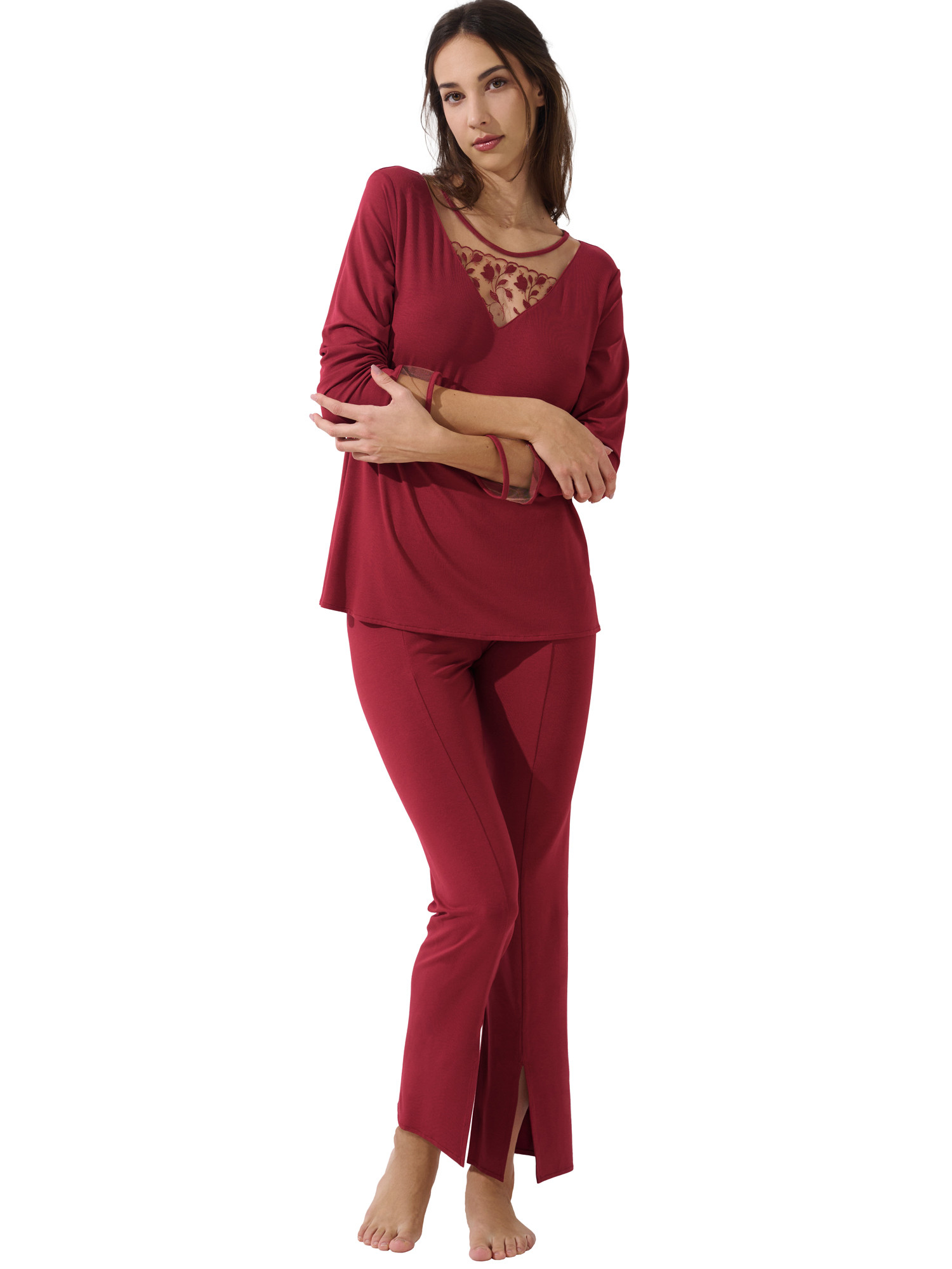 Lisca - Pyjama pantalon top manches longues Gloriosa - 23424LI - Pyjamas longs - Rouge - L