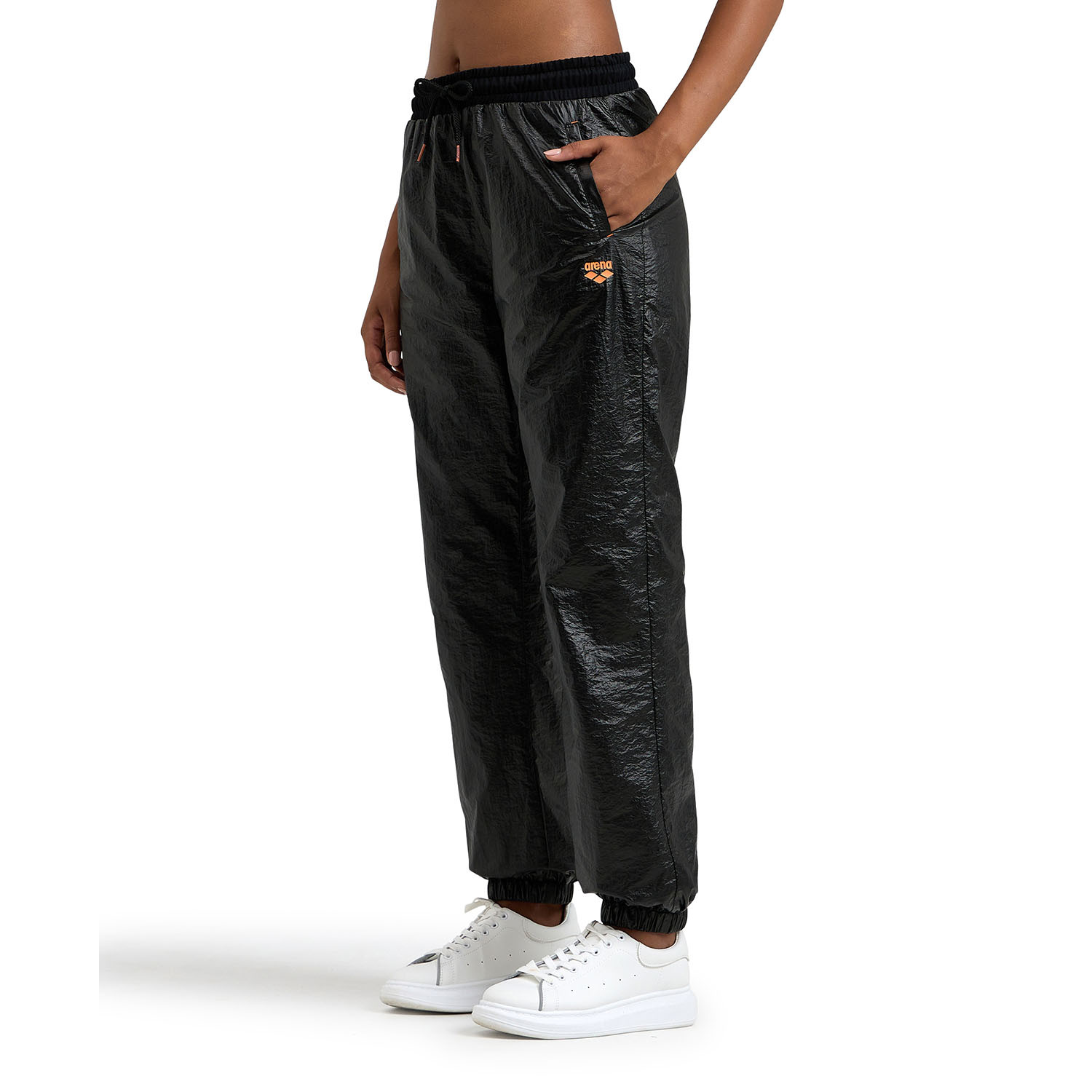 Ce pantalon arena 50th Anniversary pour femmes est confectionné dans un tissu noir brillant à effet froissé. D’une coupe décontractée, ce pantalon arena au style sportif a été créé en exclusivité pour célébrer 50 ans de passion et d’amour de l’eau. Il est doté d’un cordon de serrage élastiqué avec des extrémités de couleur orange assortie au logo placé en haut de la cuisse. À coordonner à volonté avec les bas, hauts et maillots de bain de la même collection exclusive.