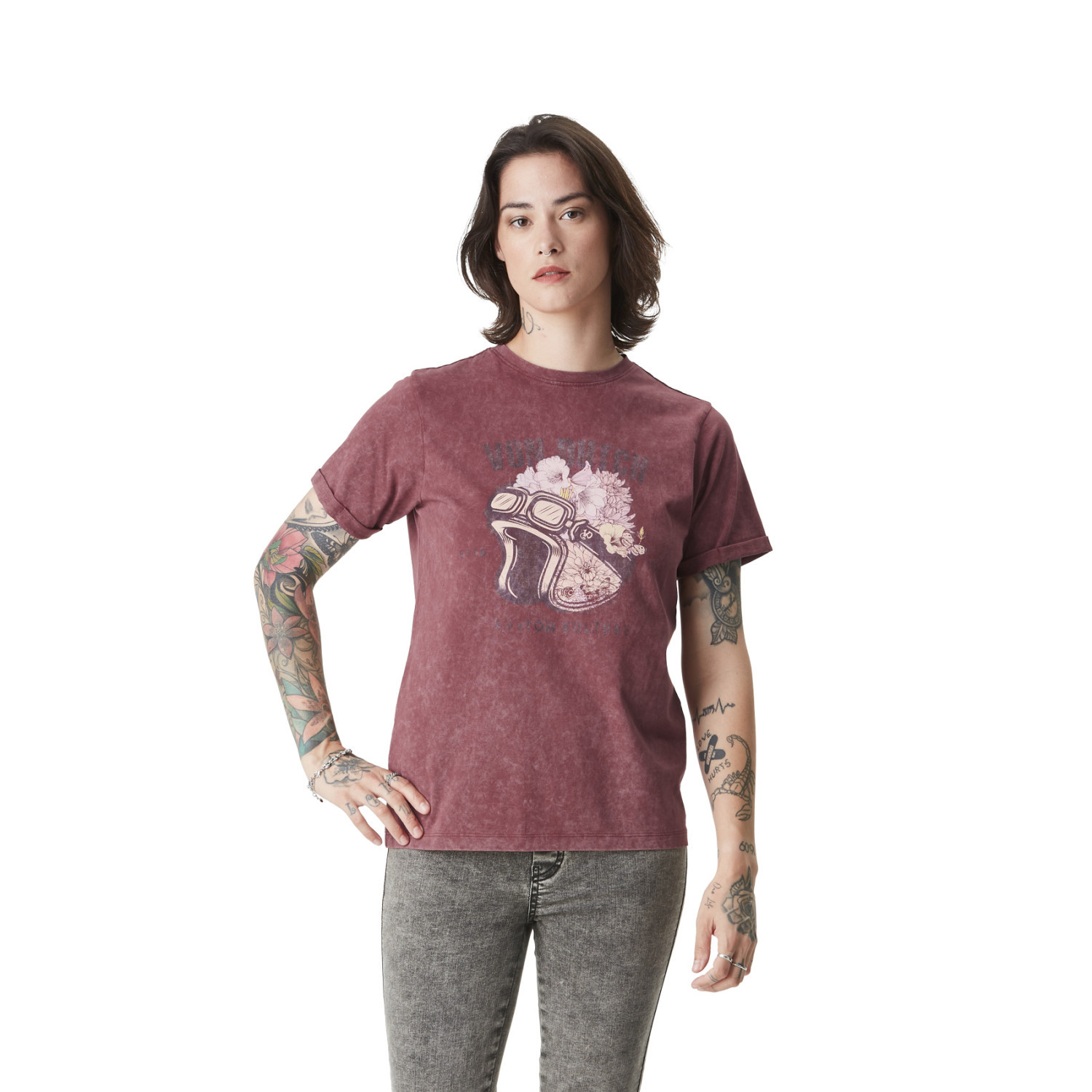 T-shirt femme à col rond acid wash et print devant Helmet