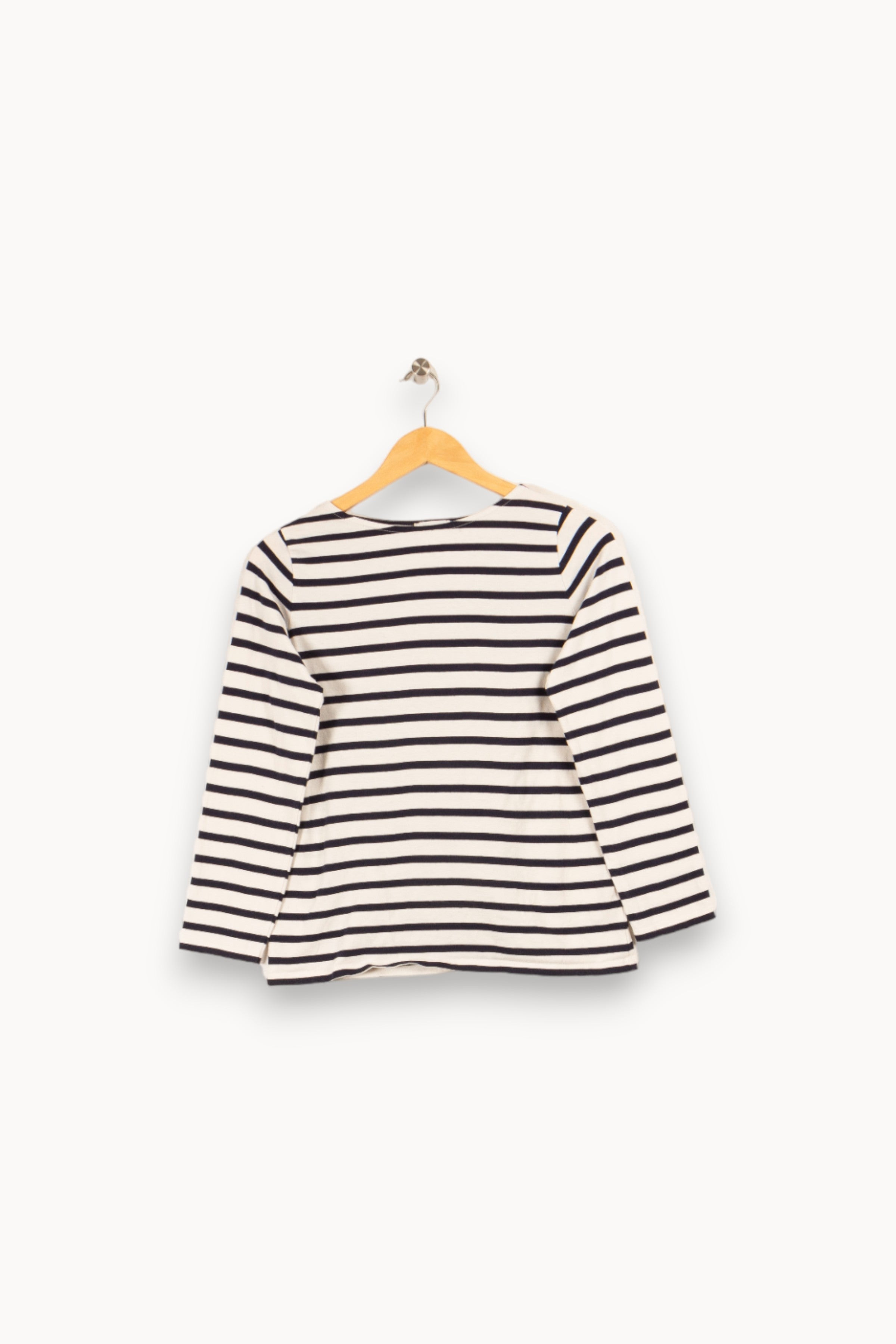 Découvrez l'élégance intemporelle avec ce top blanc signé Pablo, rehaussé de délicats traits bleu marine pour une touche de sophistication. Confectionné en pur coton, ce haut à manches longues promet un confort inégalé tout en sublimant votre silhouette. Idéal pour une allure chic au quotidien, il s'associera parfaitement à vos pièces préférées, qu'il s'agisse d'un jean brut ou d'une jupe midi. Adoptez ce top Pablo pour une garde-robe raffinée et tendance. En choisissant ce vêtement de seconde main, vous optez pour une mode plus responsable, contribuant ainsi à un futur plus durable.