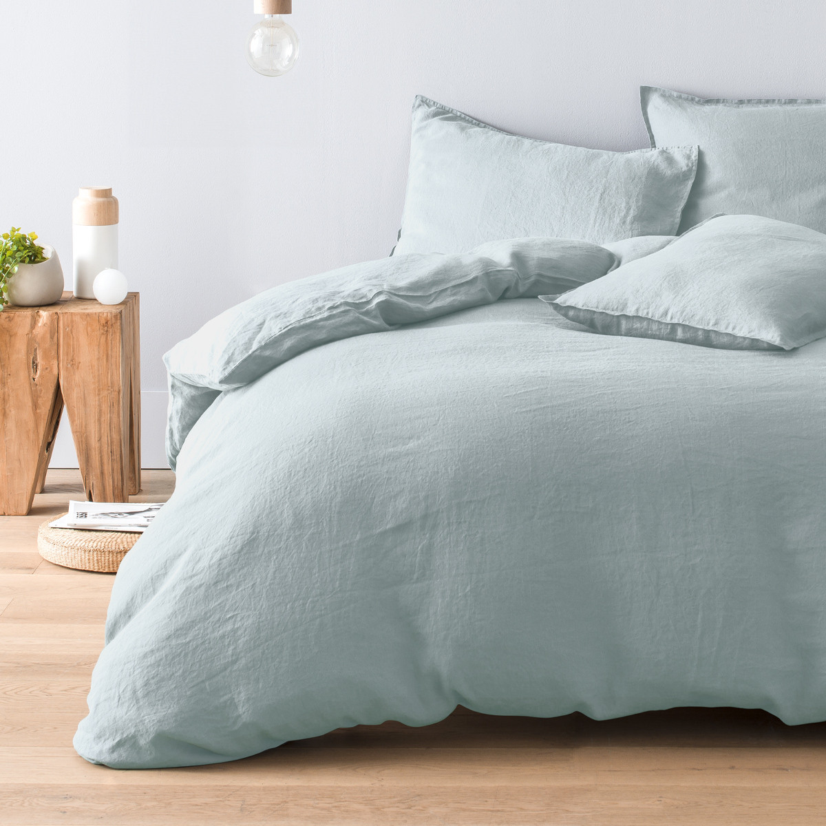 Housse de couette pur lin lavé français MILANO BLEU PALE
