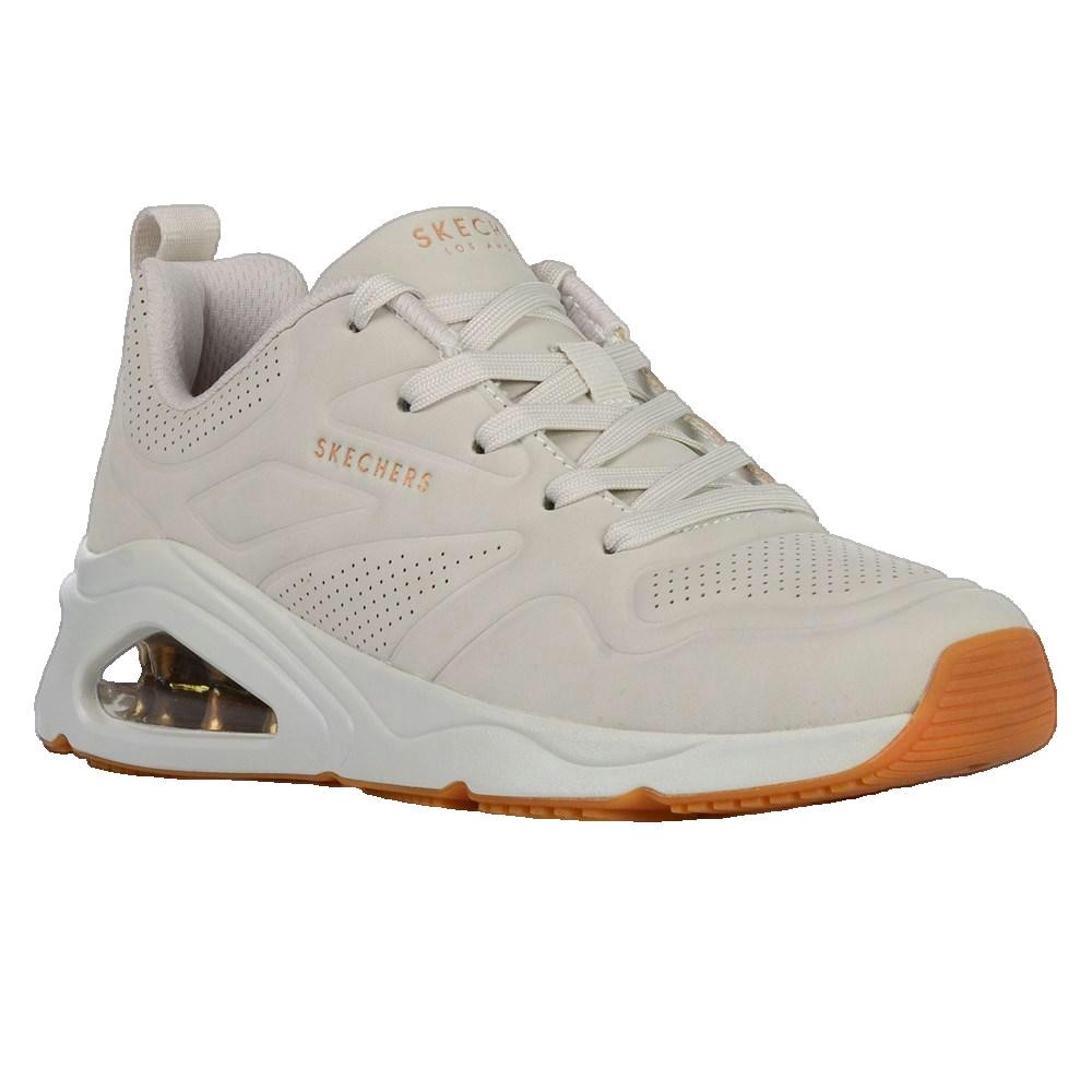 Les Skechers Tres-Air Uno sont des baskets lifestyle pour femme alliant design moderne et confort optimal. Fabriquées principalement en matériau synthétique, elles disposent d'une semelle amortissante avec coussin d'air visible grâce à la technologie Skech-Air, assurant une excellente absorption des chocs. Leur couleur blanc cassé élégante s'adapte facilement à divers styles pour un usage quotidien. Idéales pour le printemps et l'été, ces baskets basses offrent un équilibre parfait entre style et fonctionnalité.