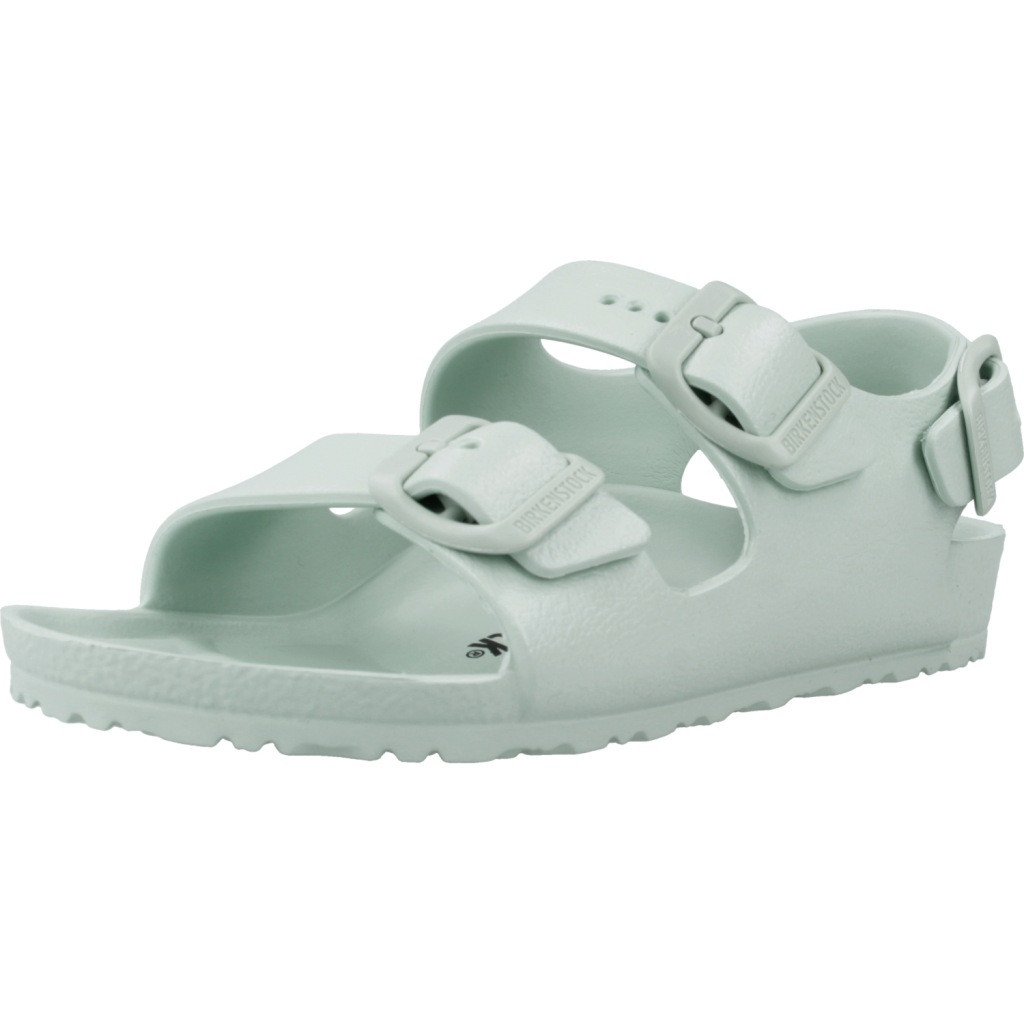 Modèle MILANO EVA de marque Birkenstock Bleu Green Doublure Gomme. Extérieur Gomme. Type de construction: Injection. Fabrique en Allemagne.